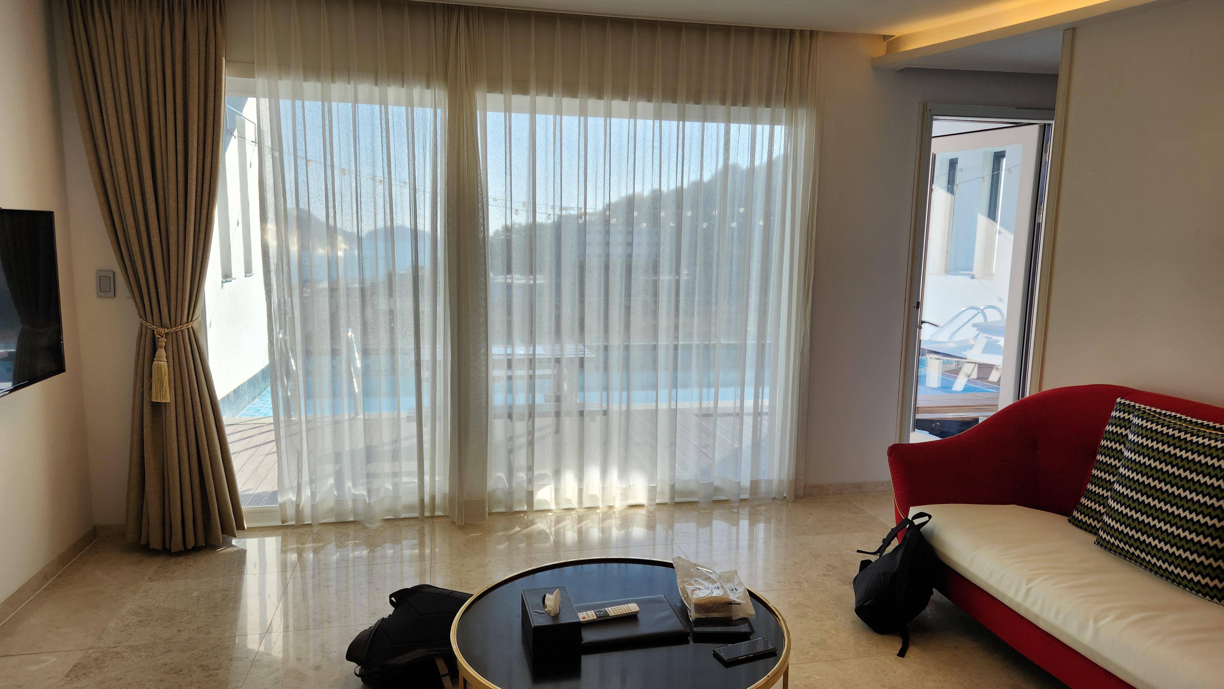 여기를 선택한 이유가 객실에 수영장과 스파가 딸려 있어서