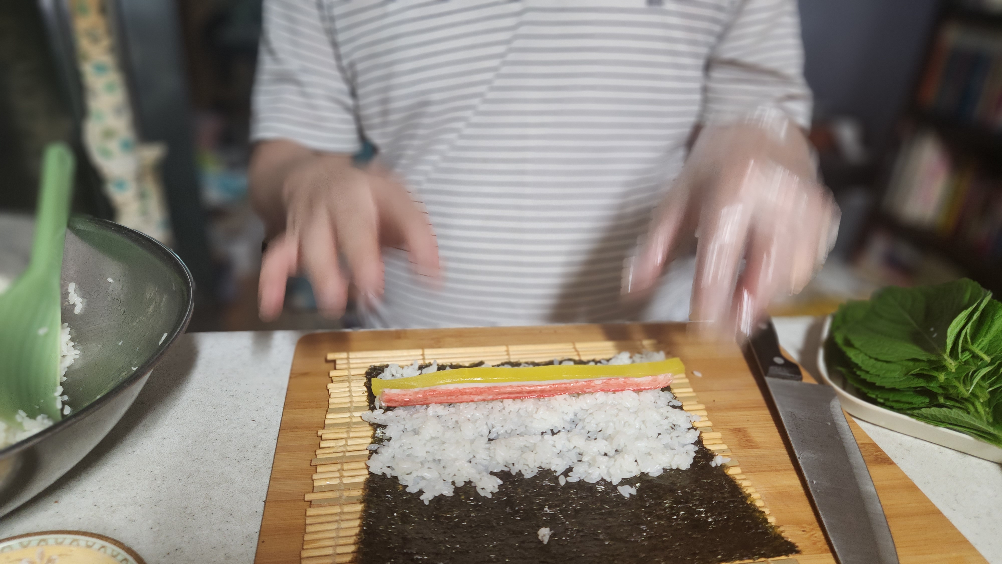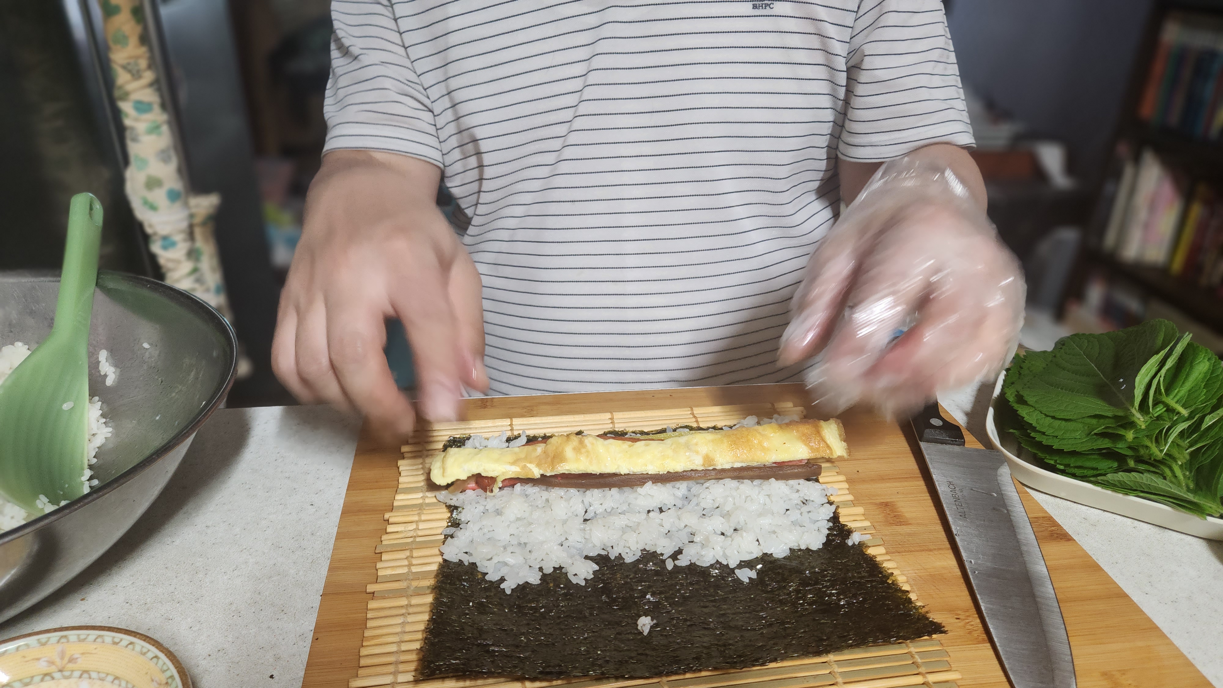 이렇게 준비가 끝나면 본격적으로 김밥을 잘 말아보도록 하겠습니다