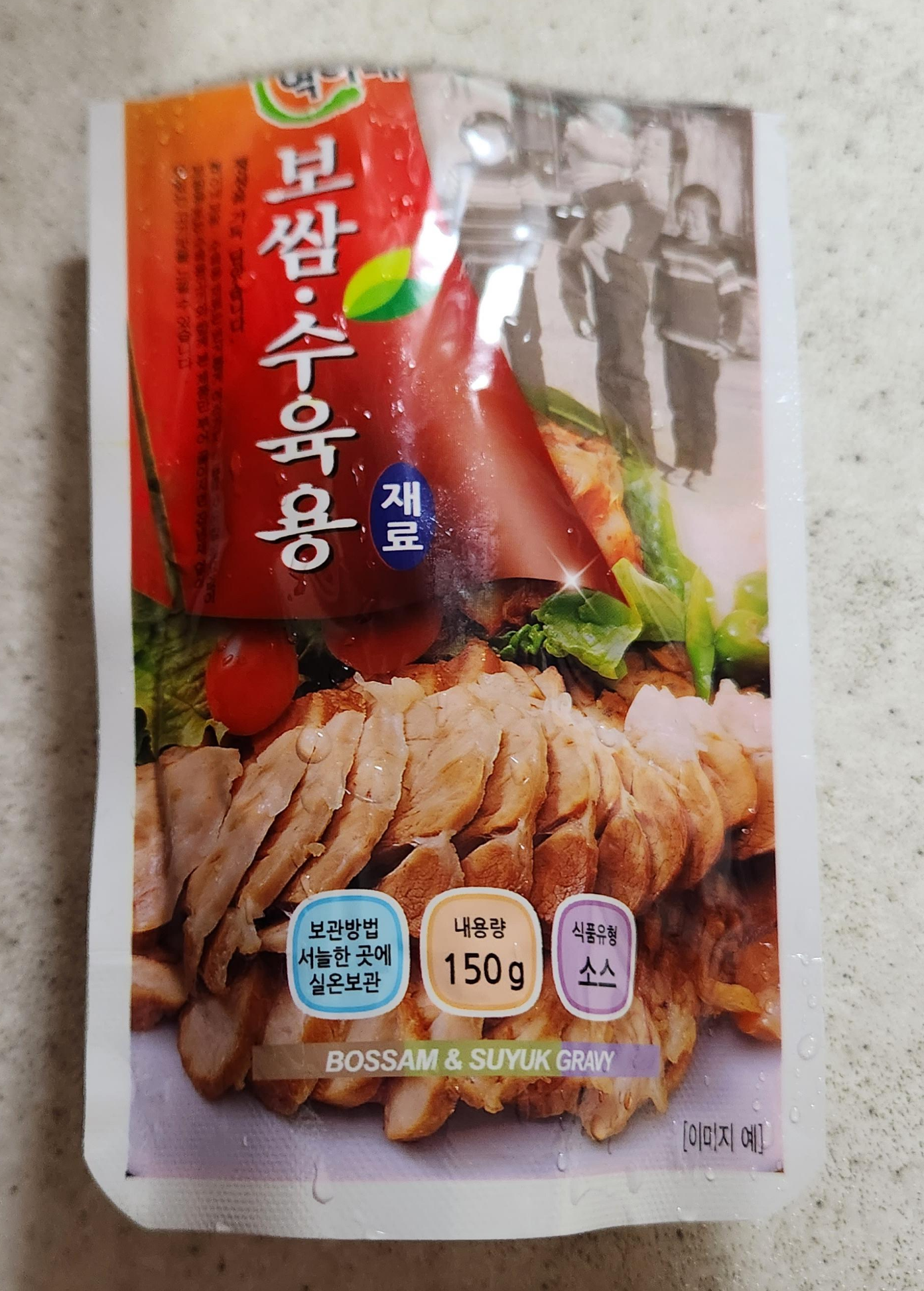 보쌈용 삼겹살 2근, 보쌈용 앞다리살 1근 반, 수육용 육수를 사 와서