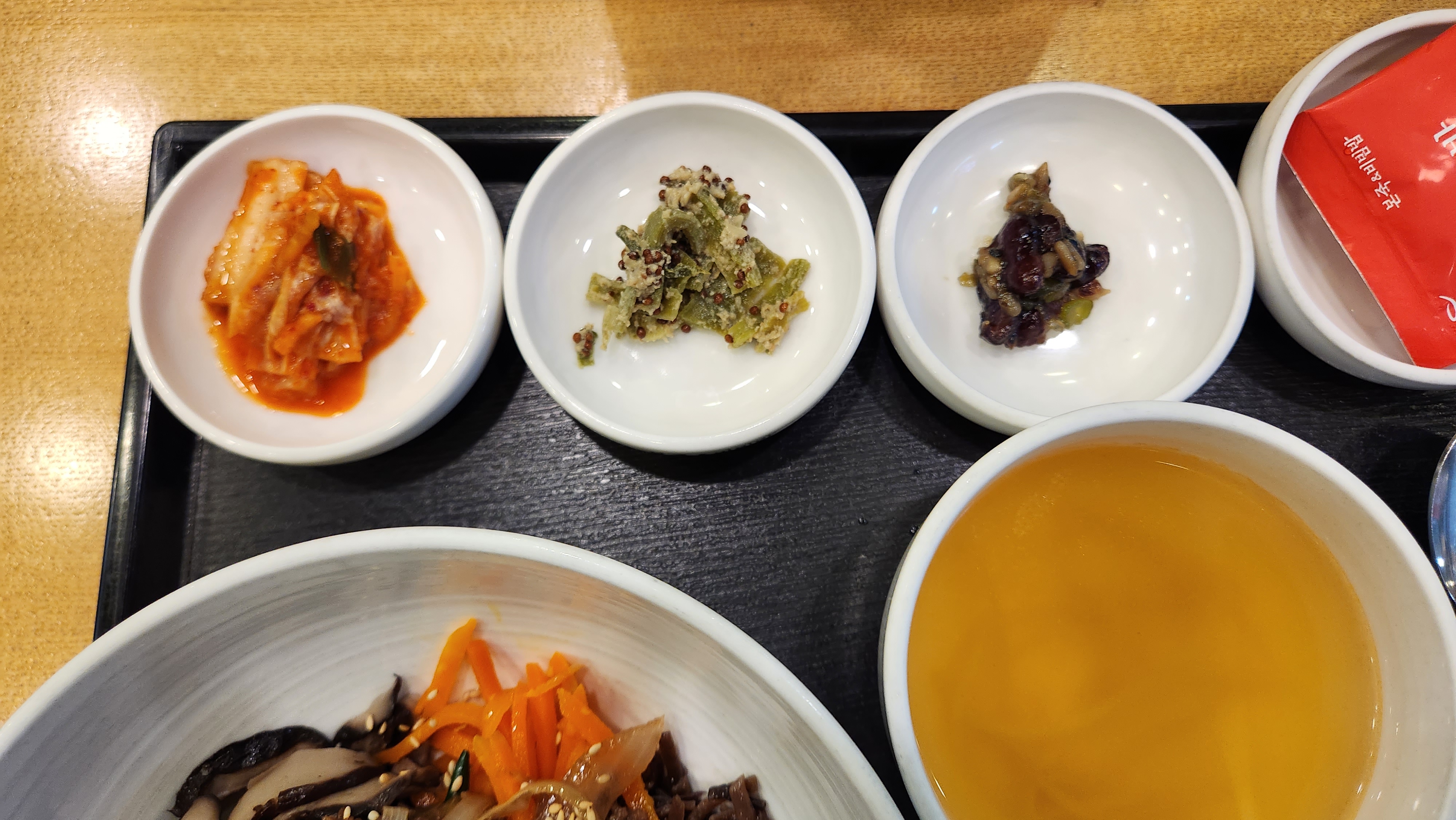 반찬은 김치와 나물(?)등이 조금씩 나오고 국은 콩나물국이 나와요