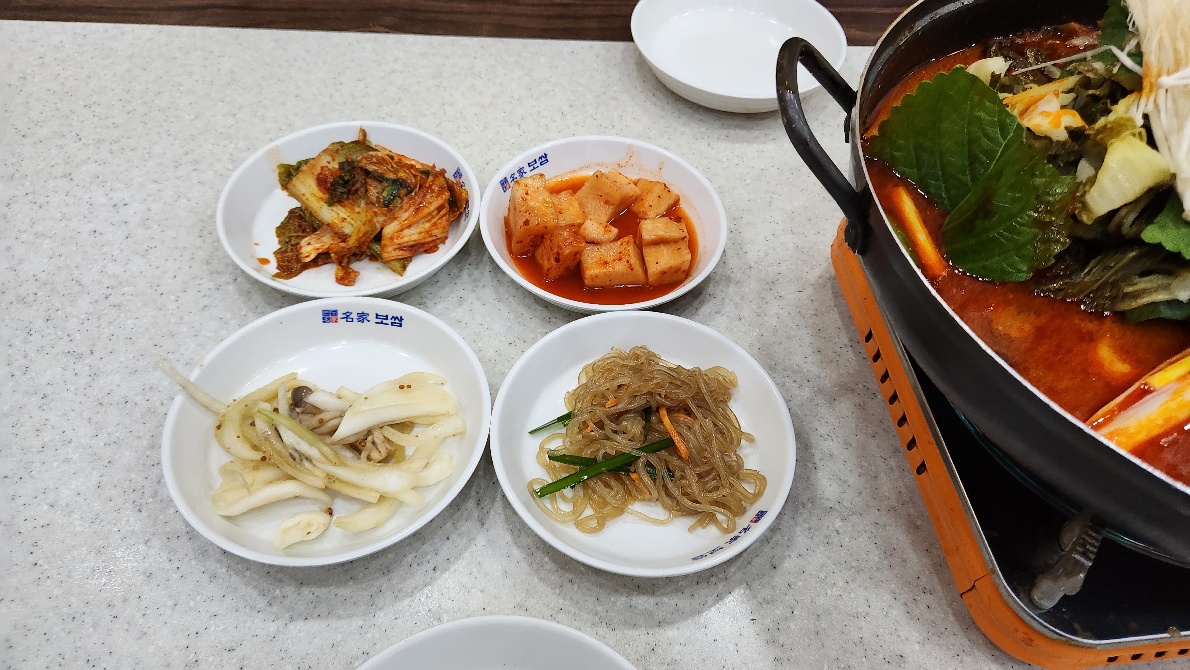 반찬(?)으로는 잡채와 깍두기, 배추김기, 양파절임이 나왔는데 잡채는 약간 불은듯