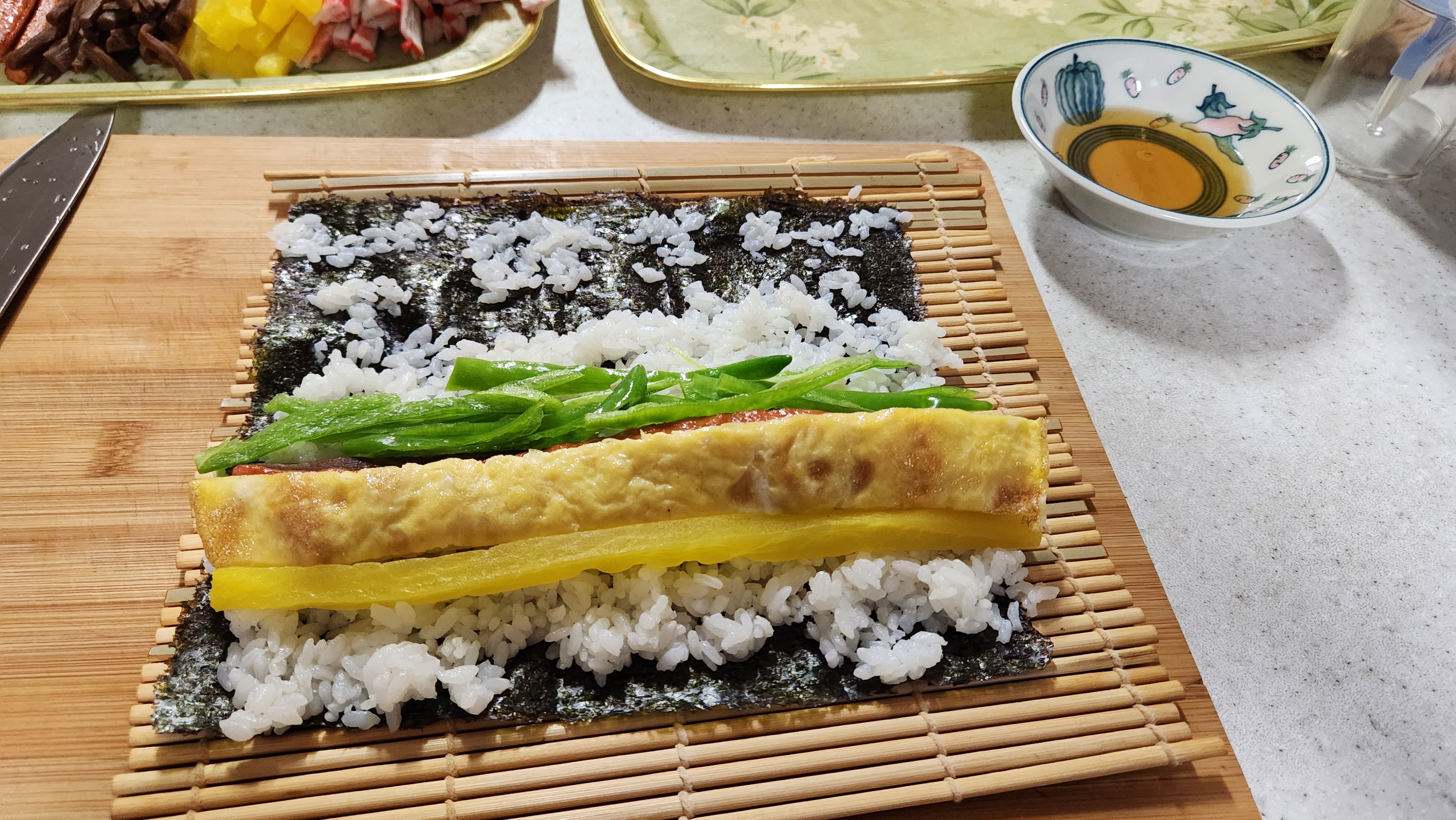 전에는 20줄 정도 만들었는데...요즘은 김밥 김 봉지에 들어 있는