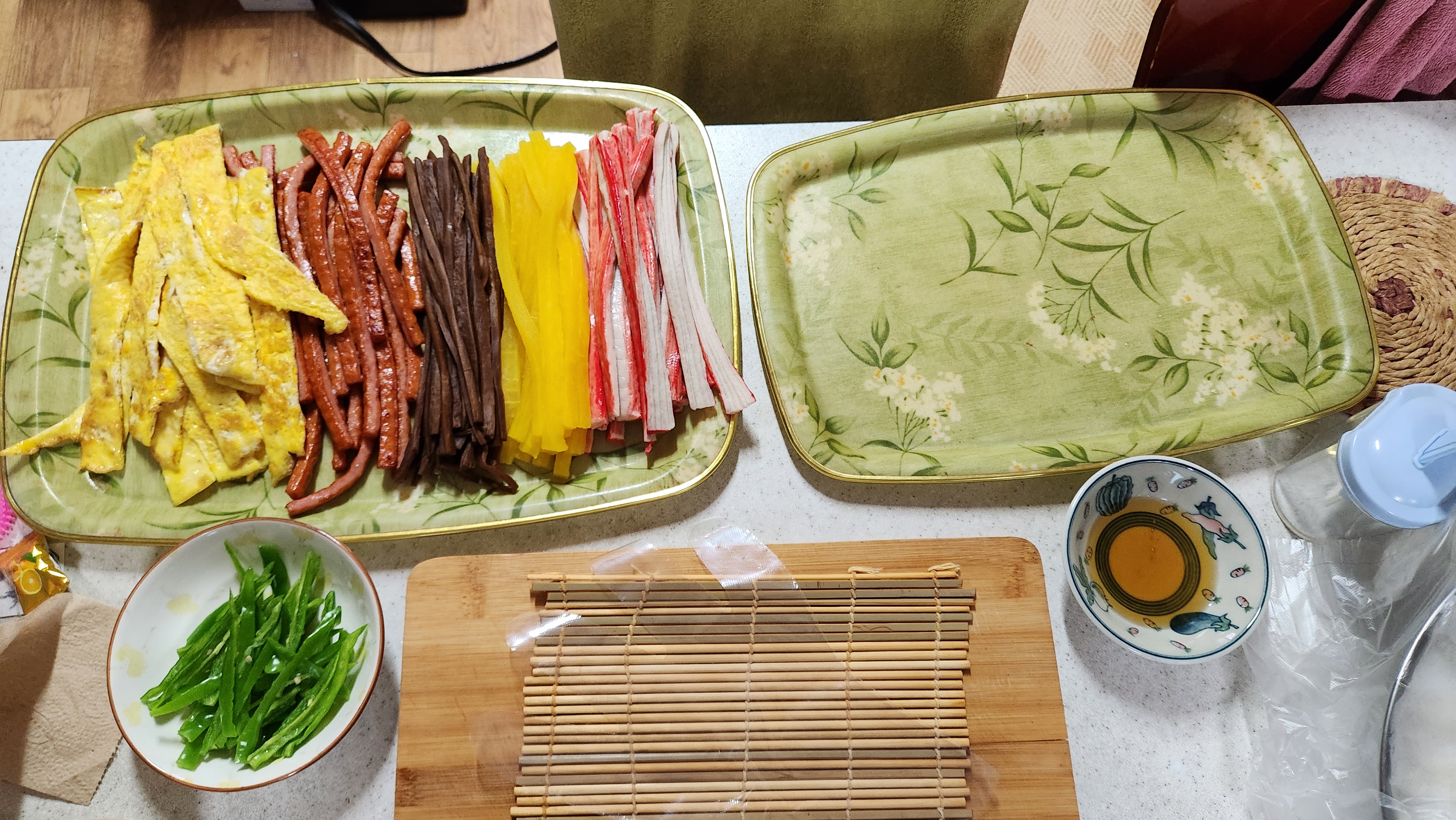 전에는 20줄 정도 만들었는데...요즘은 김밥 김 봉지에 들어 있는