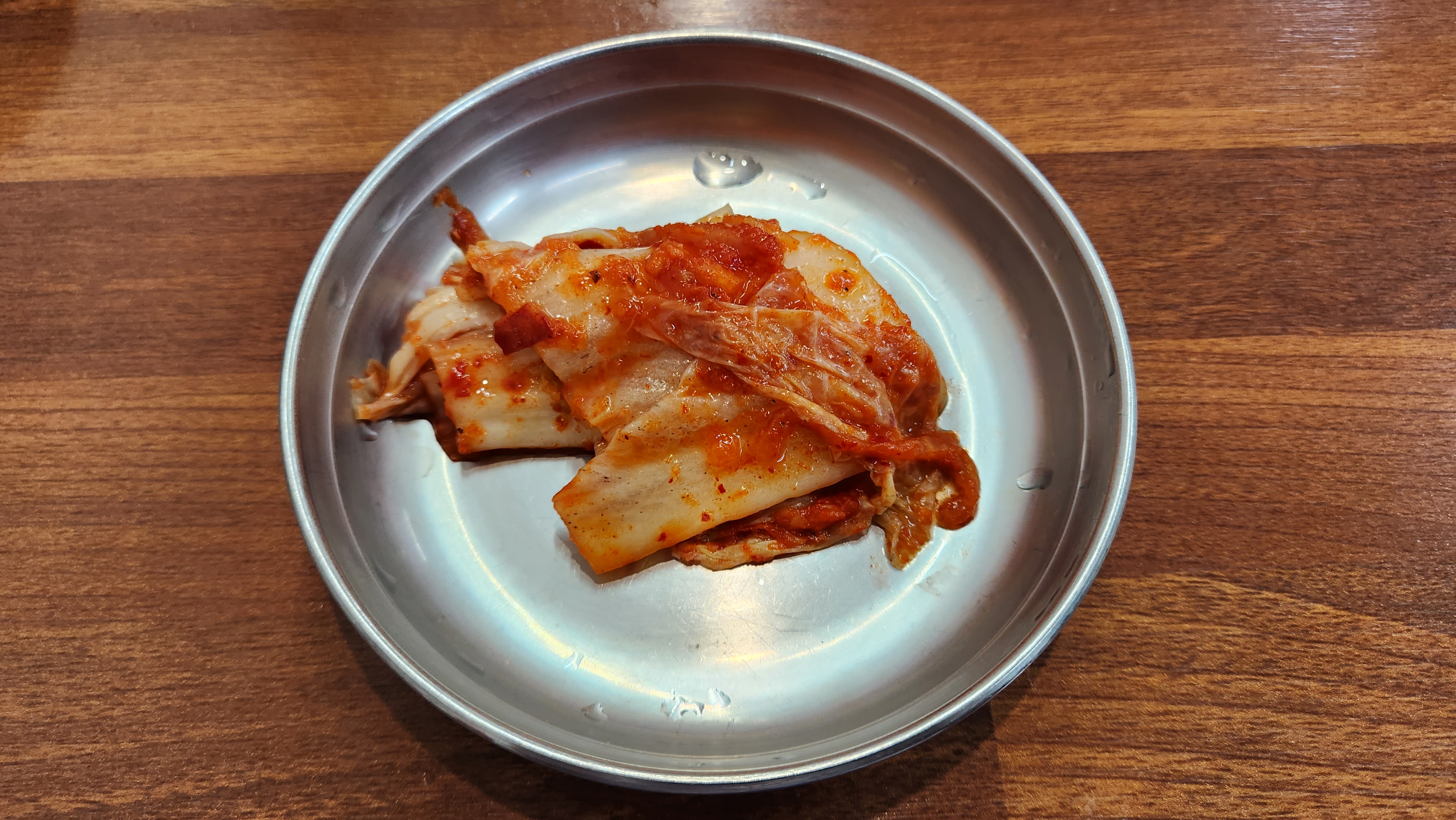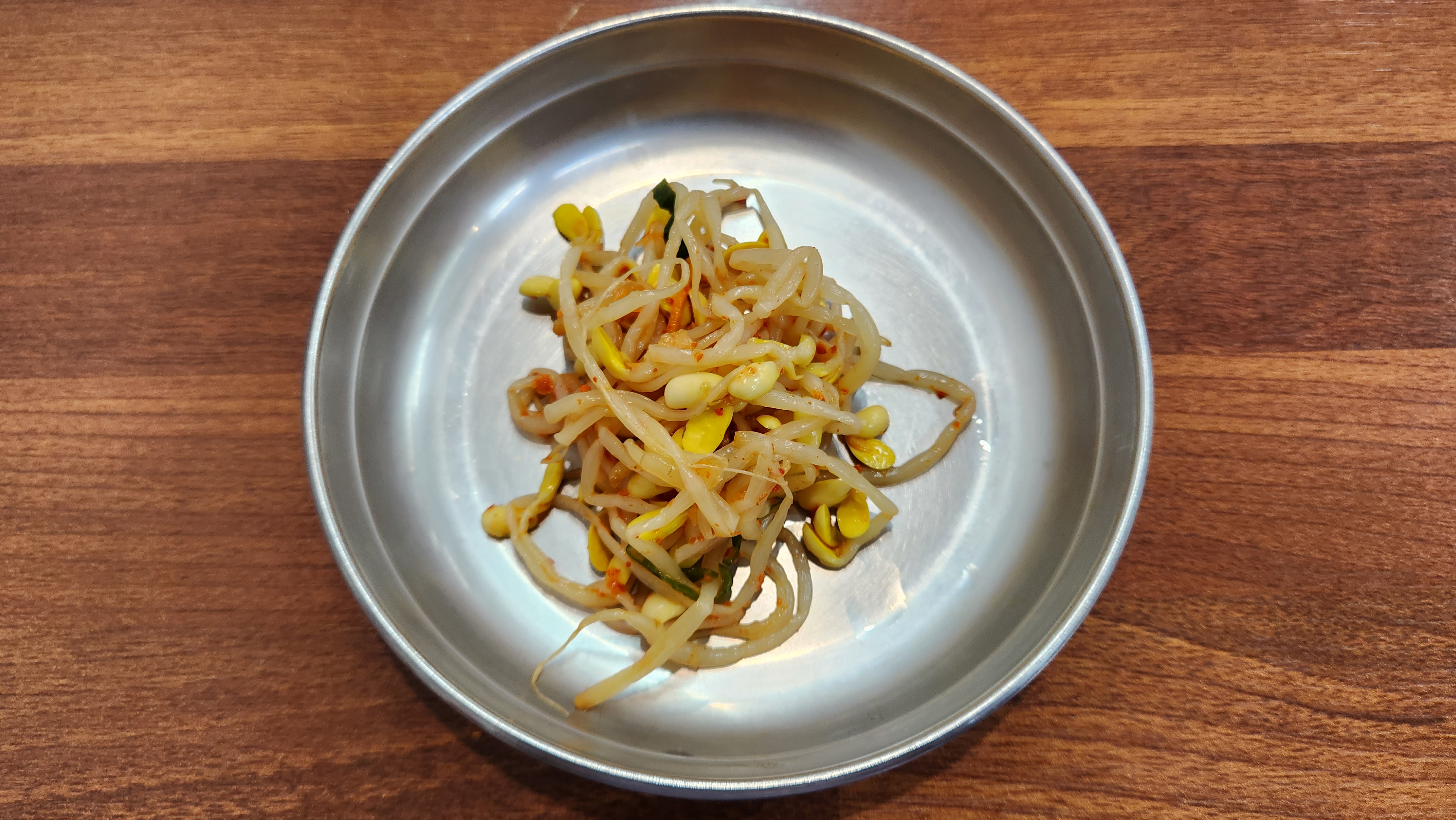 반찬은 무김치, 콩나물, 배추김치, 부추, 새우젓, 다데기 였습니다