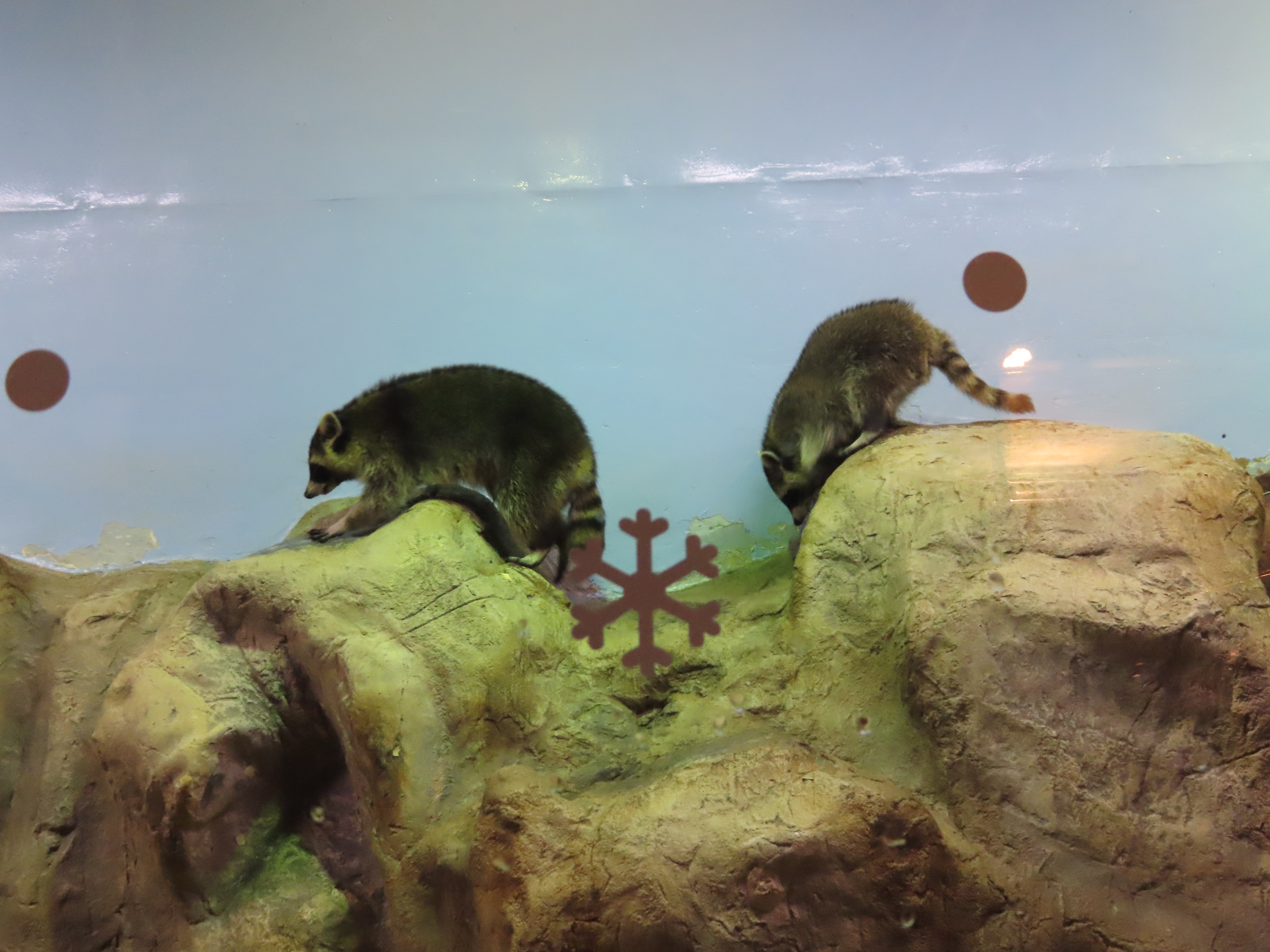 너구리와 팽귄입니다...너구리는 계속 이리저리 왔다 갔다 하는 모습을 보이고