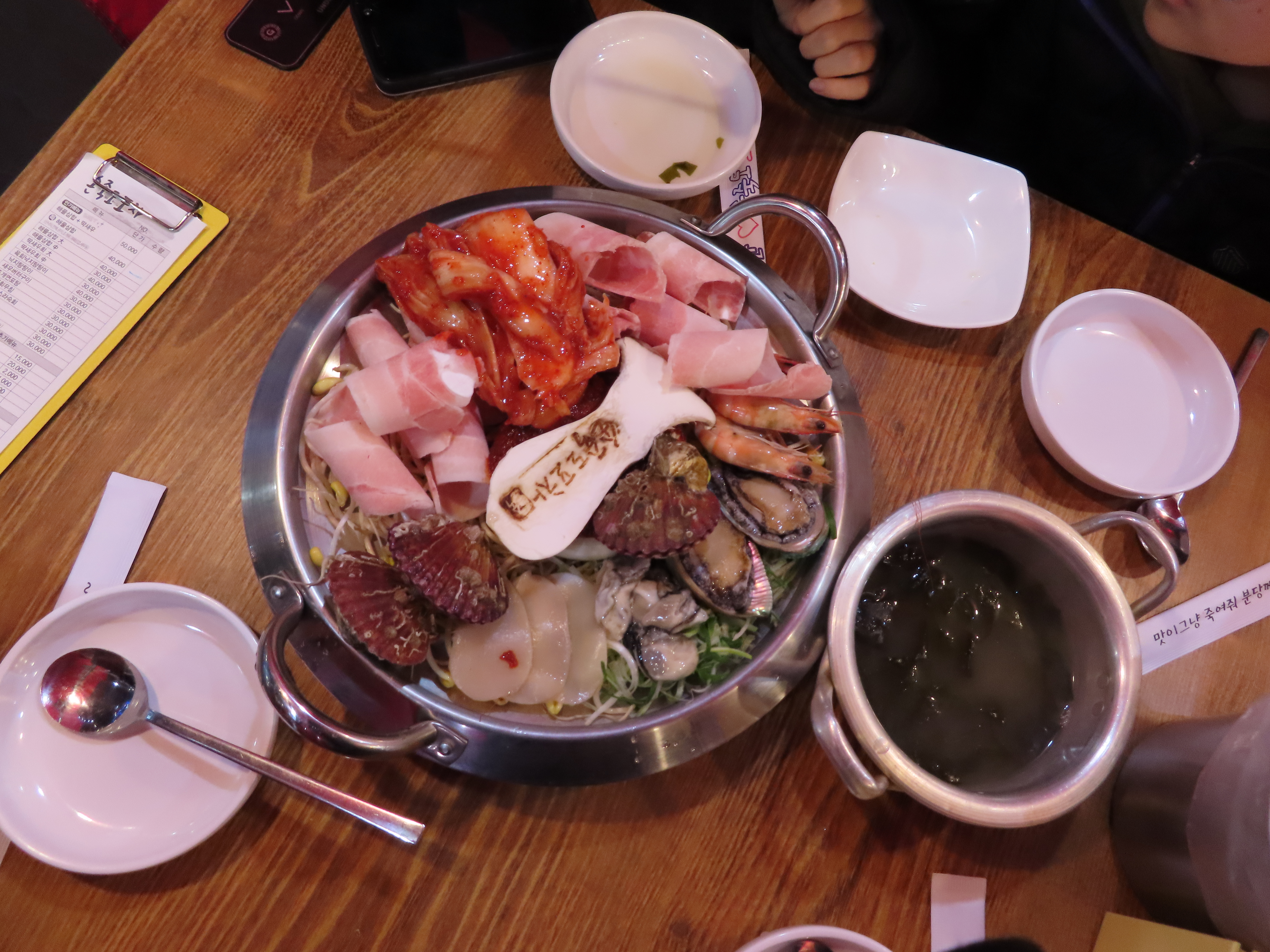 저희가 시켰던게 해물삼합인데요....고기와 김치, 새우, 전복, 콩나물등등
