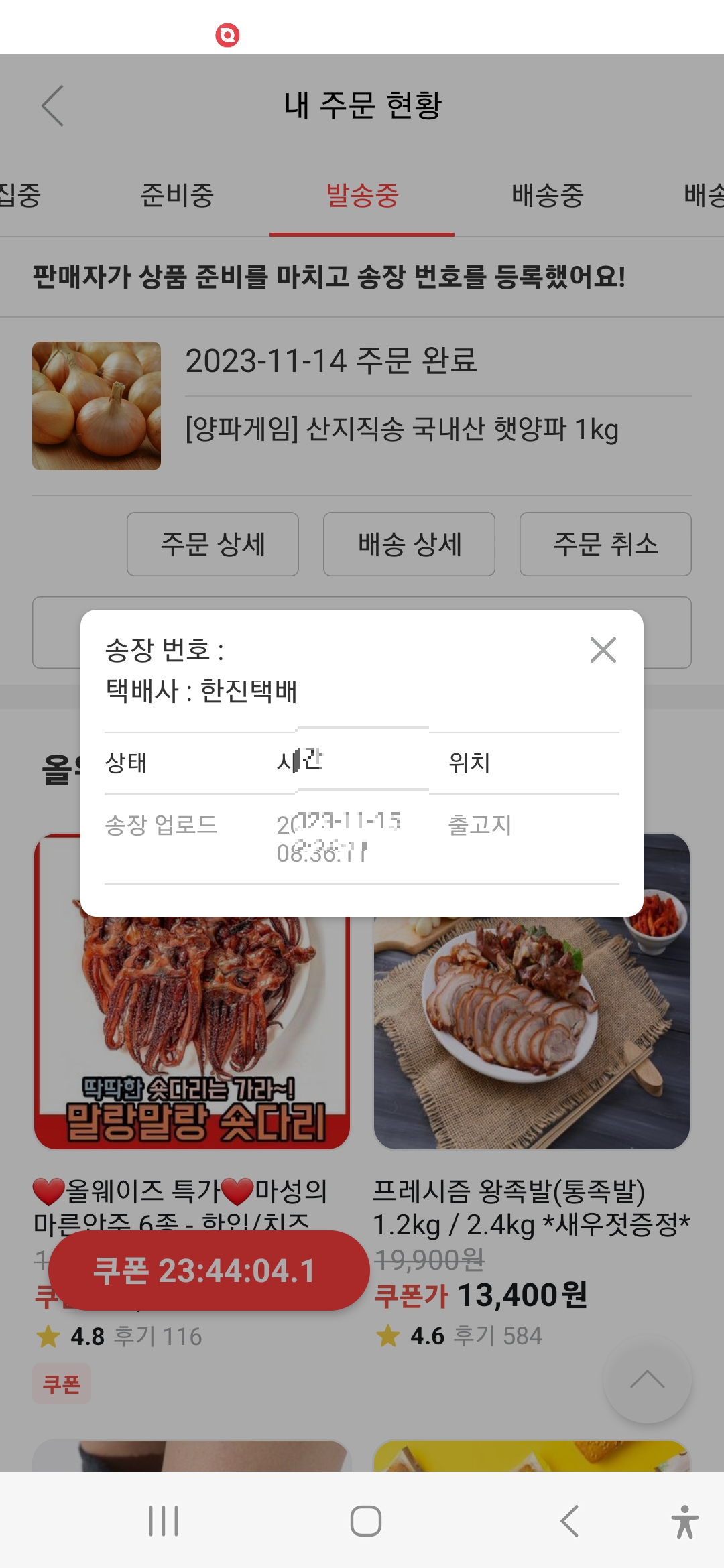 그랬더니 너무 배송물량이 많아서 2~3일정도 걸린다고 하네요