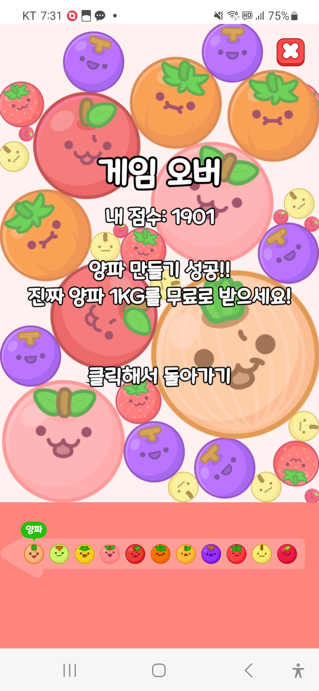 다음날 양파게임에 들어가 보니 위와같이 떴습니다