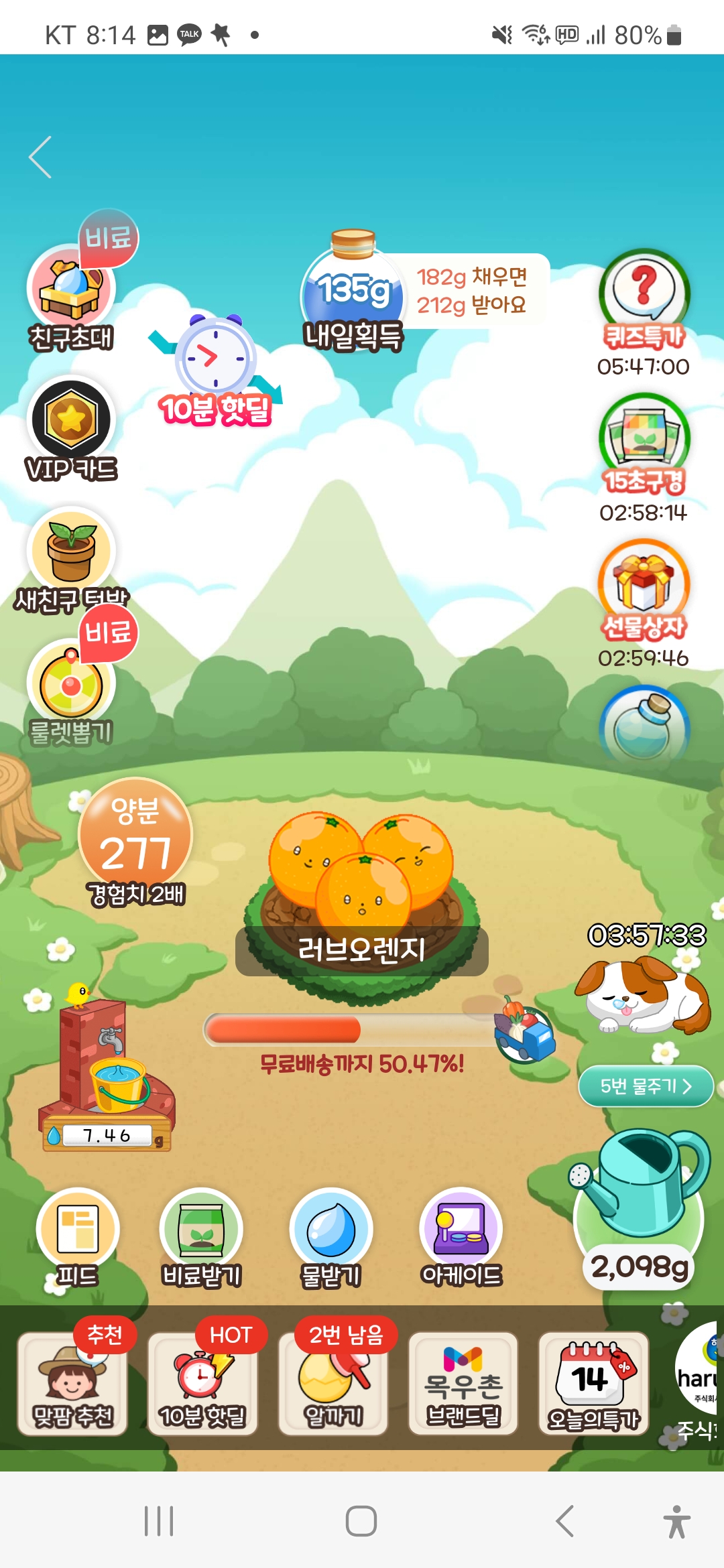 비료를 주고 물을 주면 퍼센트가 많이 깎여 나가더군요