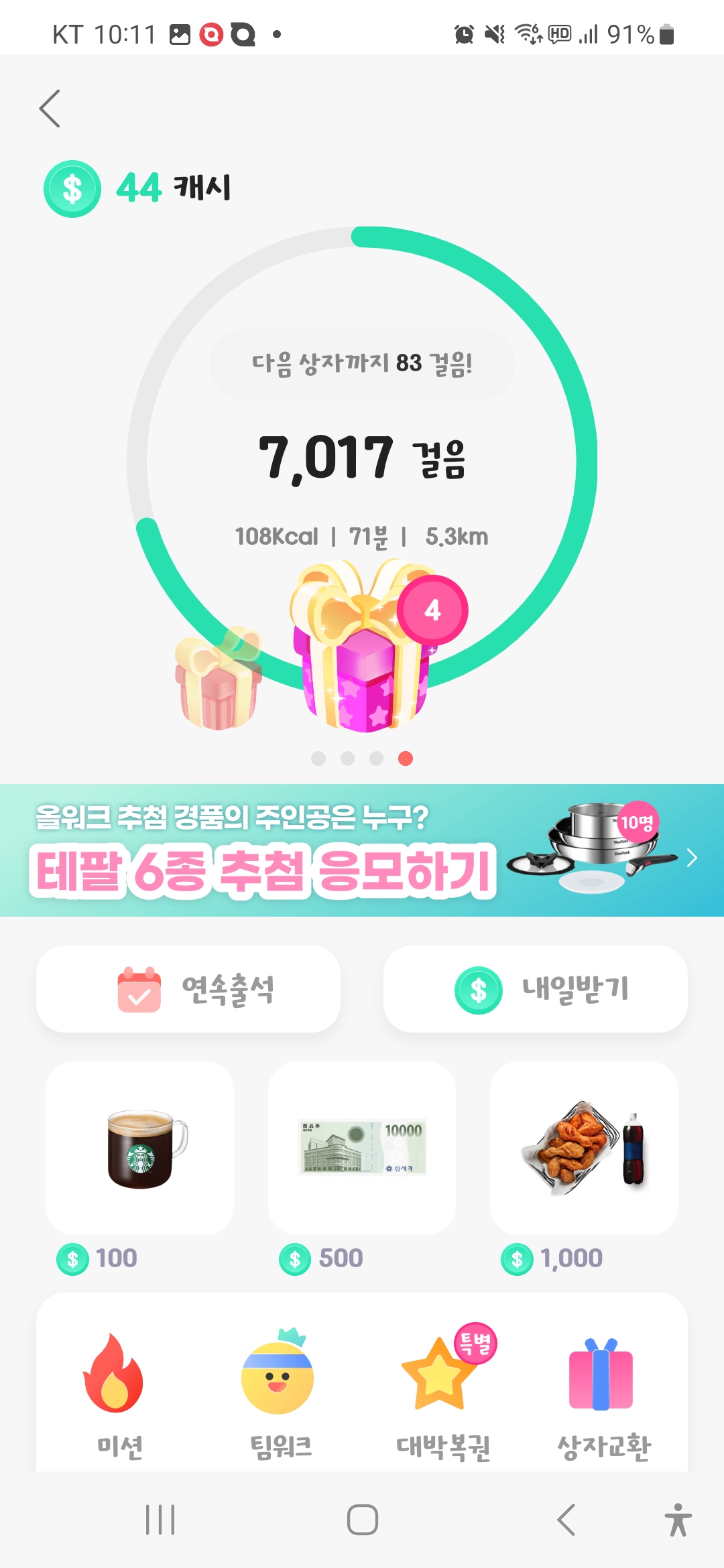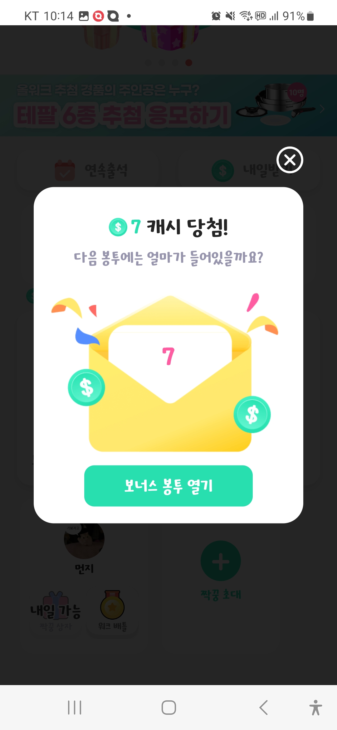 봉투열기 전 아래를 자세히 보면 한 번에 20 캐시씩