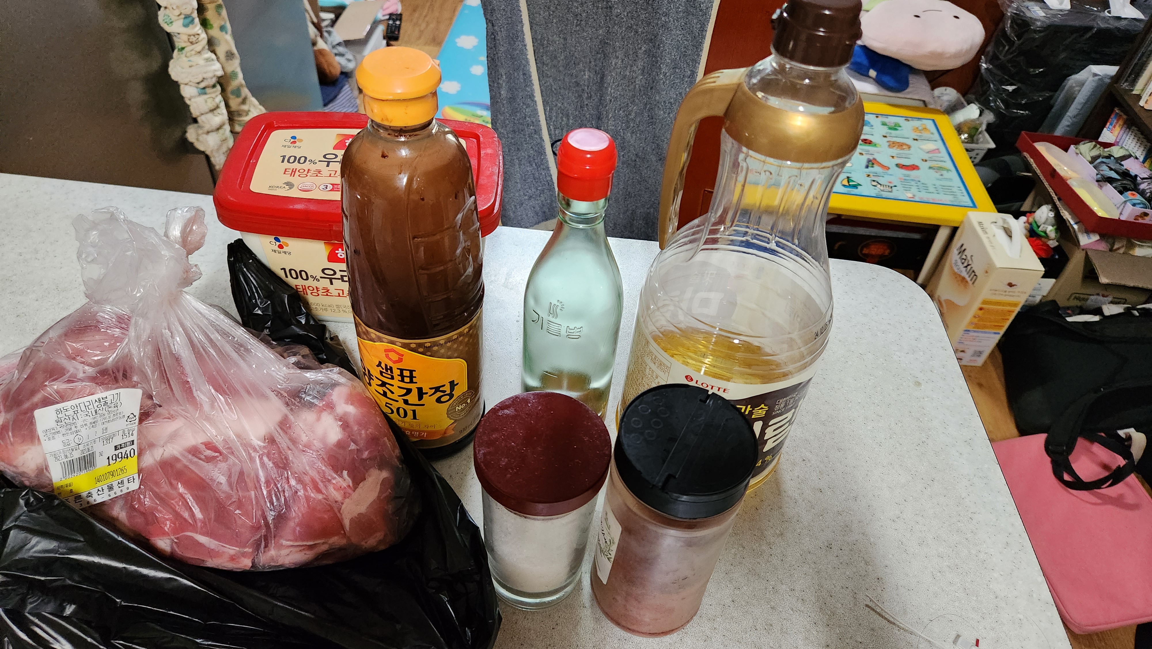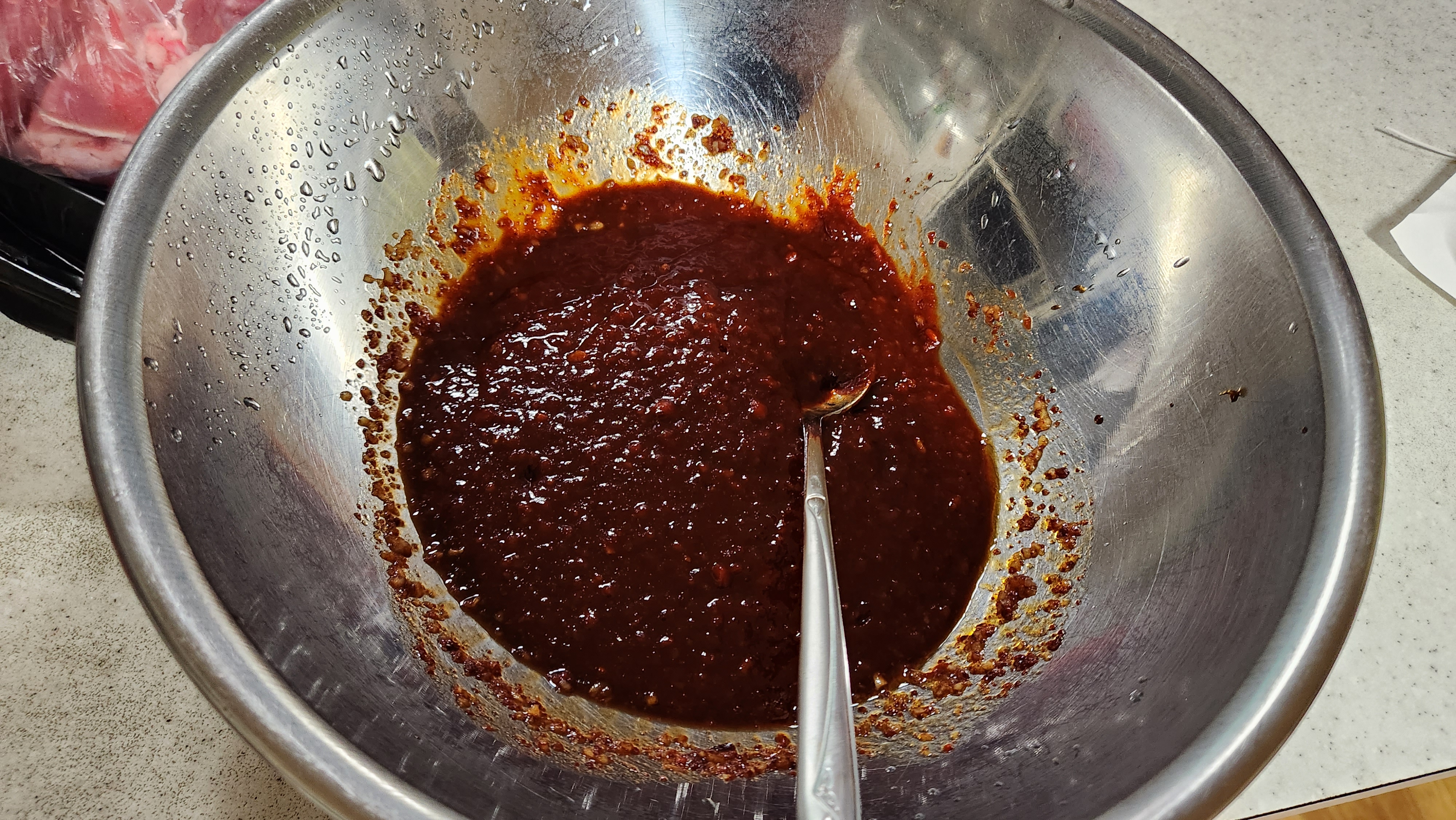 고추장은 3큰술(고봉밥올리듯)을 했는데 돼지고기를 2근 반을 해야 해서