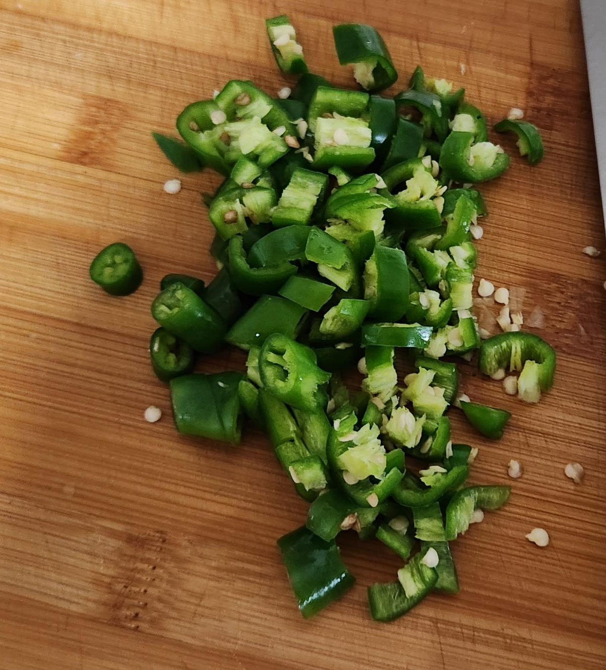 불 끄기 3분 전 정도에 청양고추를 송송 썰어서 넣으신다음