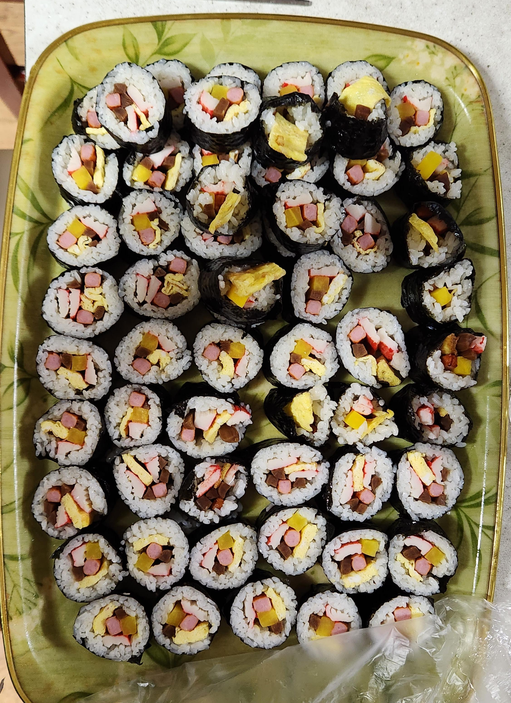 밥하고 재료준비하고 김밥 다 말고 다 정리까지 하는데 총 3시간 정도 걸렸네요...^^;;;