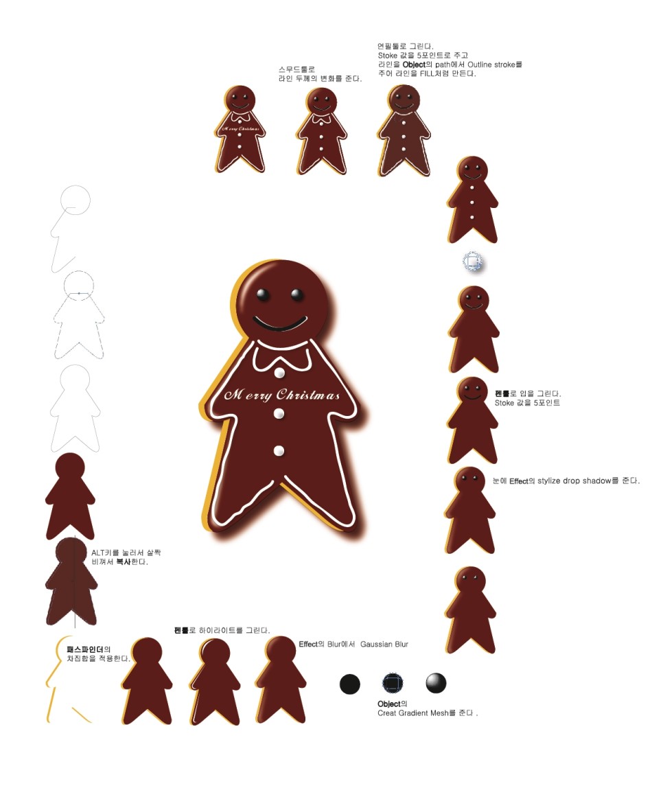 크리스마스 초콜릿 만들기에서는 눈이나 단추등에 들어가는 Effects 효과를 잘 적용시켜