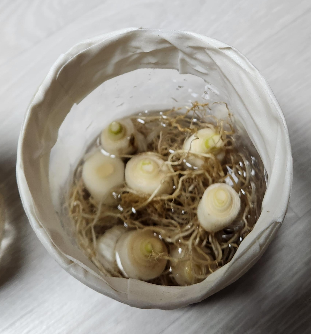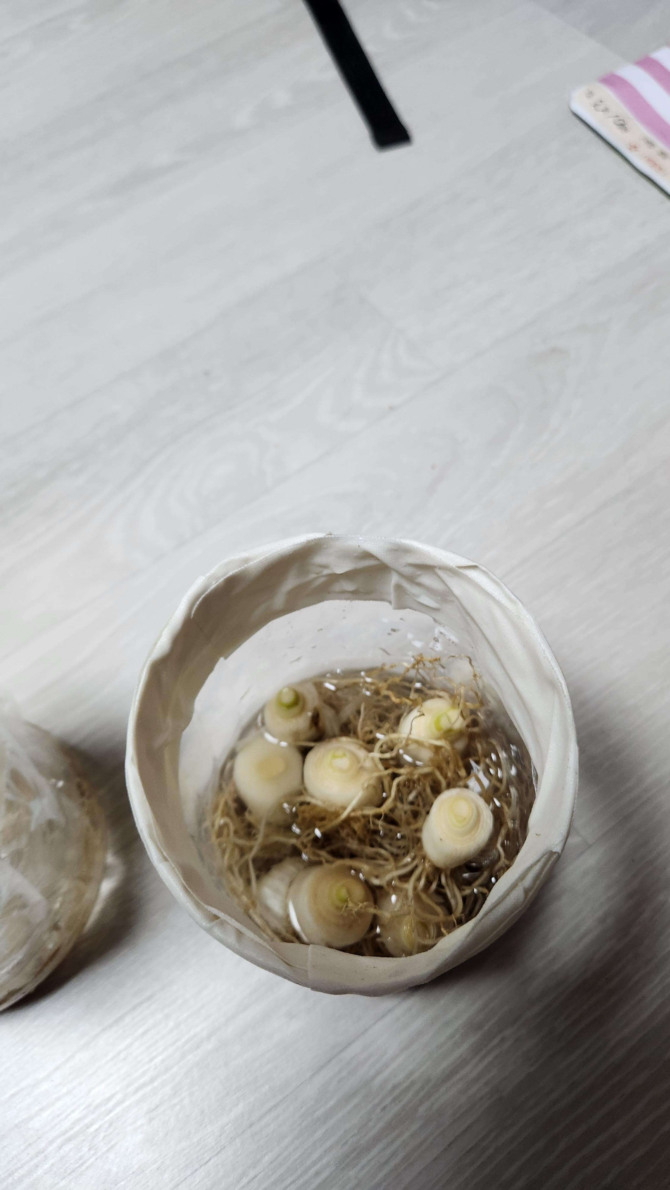 야채가게에서 뿌리가 손질되지 않은 파를 사다가