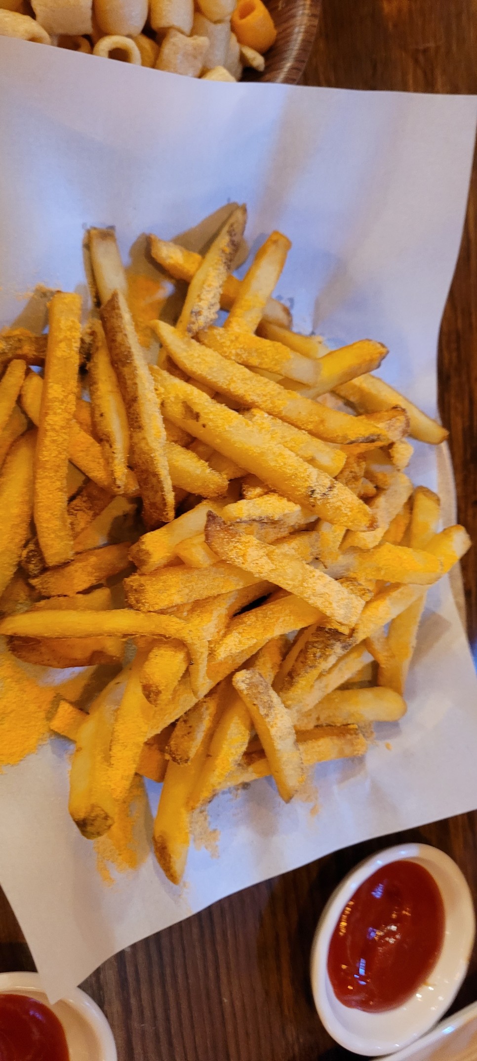 감자튀김에는 치즈가루가 뿌려져 있어요^^