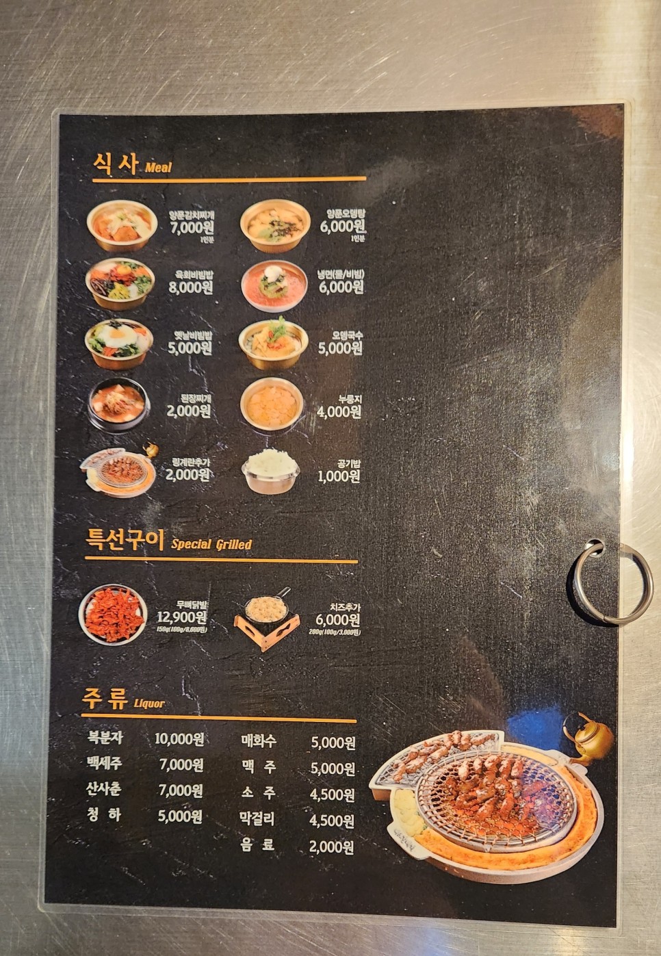 식사로는 양푼김치찌개, 양푼어묵탕, 냉면, 옛날비빔밥, 된장찌개, 누룽지등