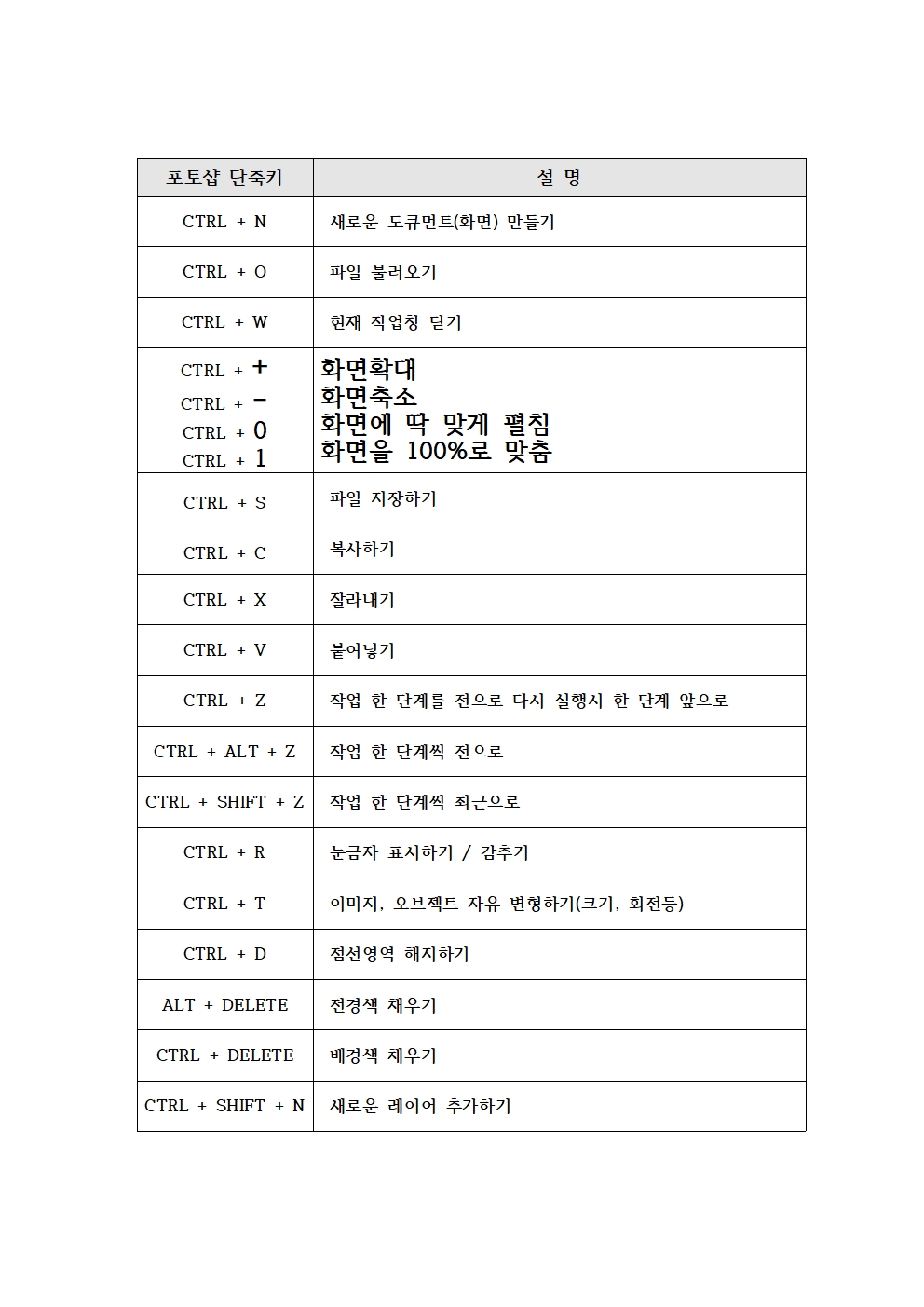 기본으로 알아야 할 포토샵 단축키입니다