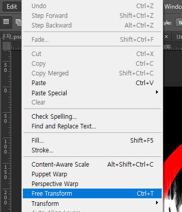 Edit -> Free TransForms(자유변형), Character(캐릭터 - 글씨조절)등을 아셔야 합니다