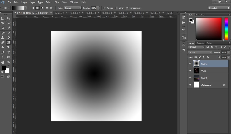 6회차 - 퀵마스크와 클론스템프 - 힐링브러시툴 익히기 - 번개만들기(그라디언트)추가
