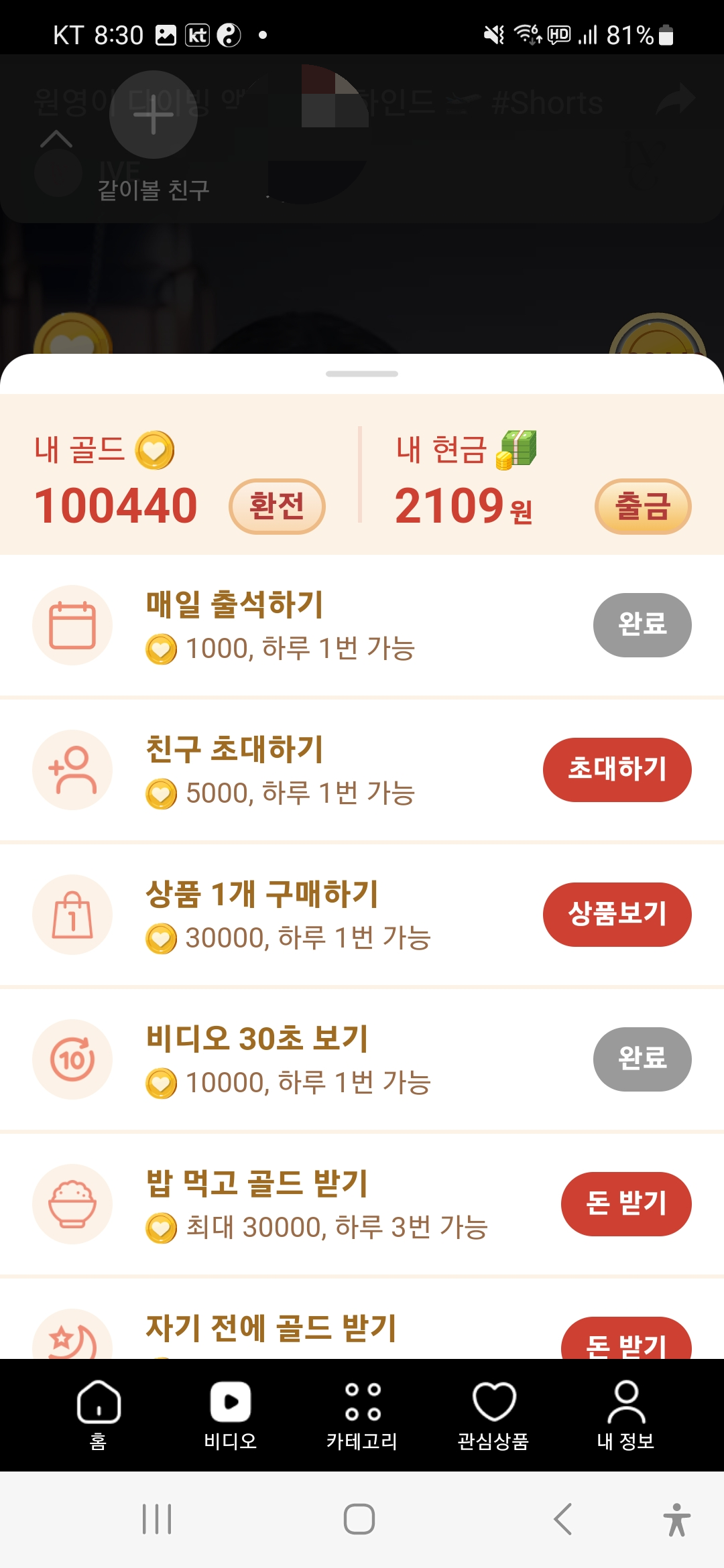 올팜은 일단 기본으로 하고 비디오를 보면 포인트를 받을 수 있고