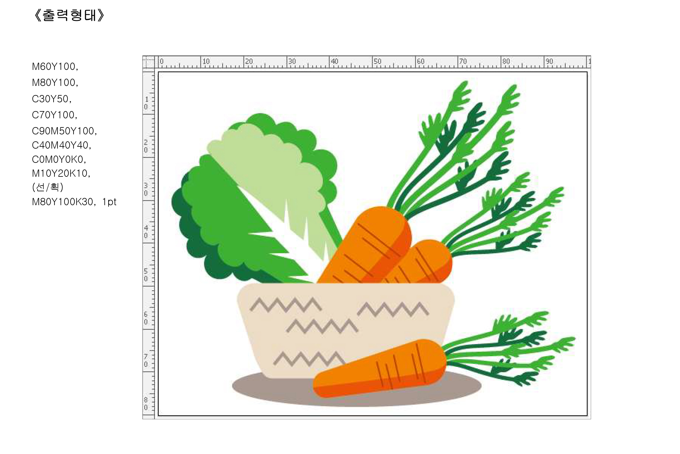 펜툴과 도형툴을 이용하여 당근과 배추, 그릇 모양을 만듭니다