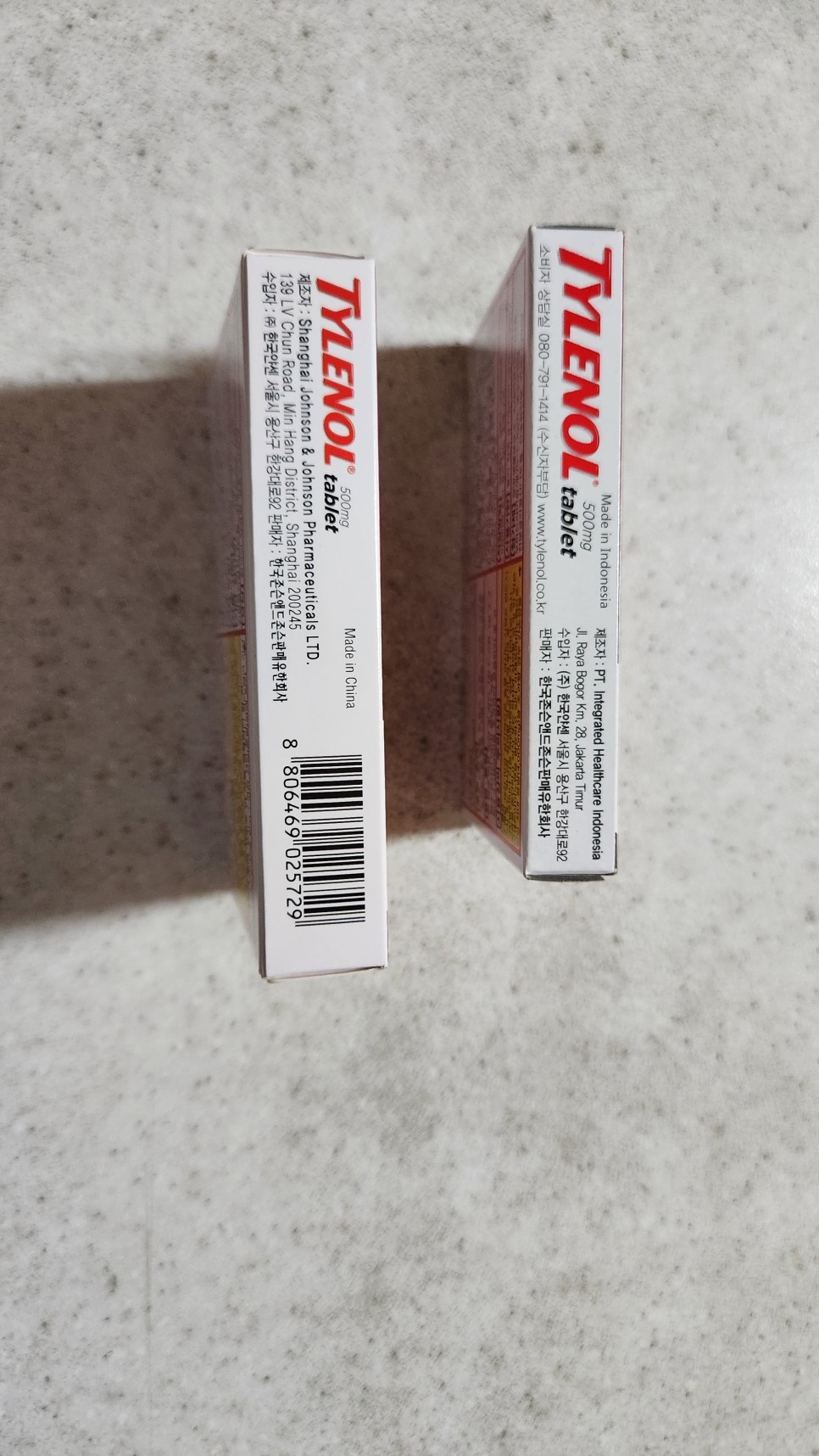 위의 사진들 중에 조금 작은 것은 편의점에서 파는 타이레놀이고 조금 큰 것이