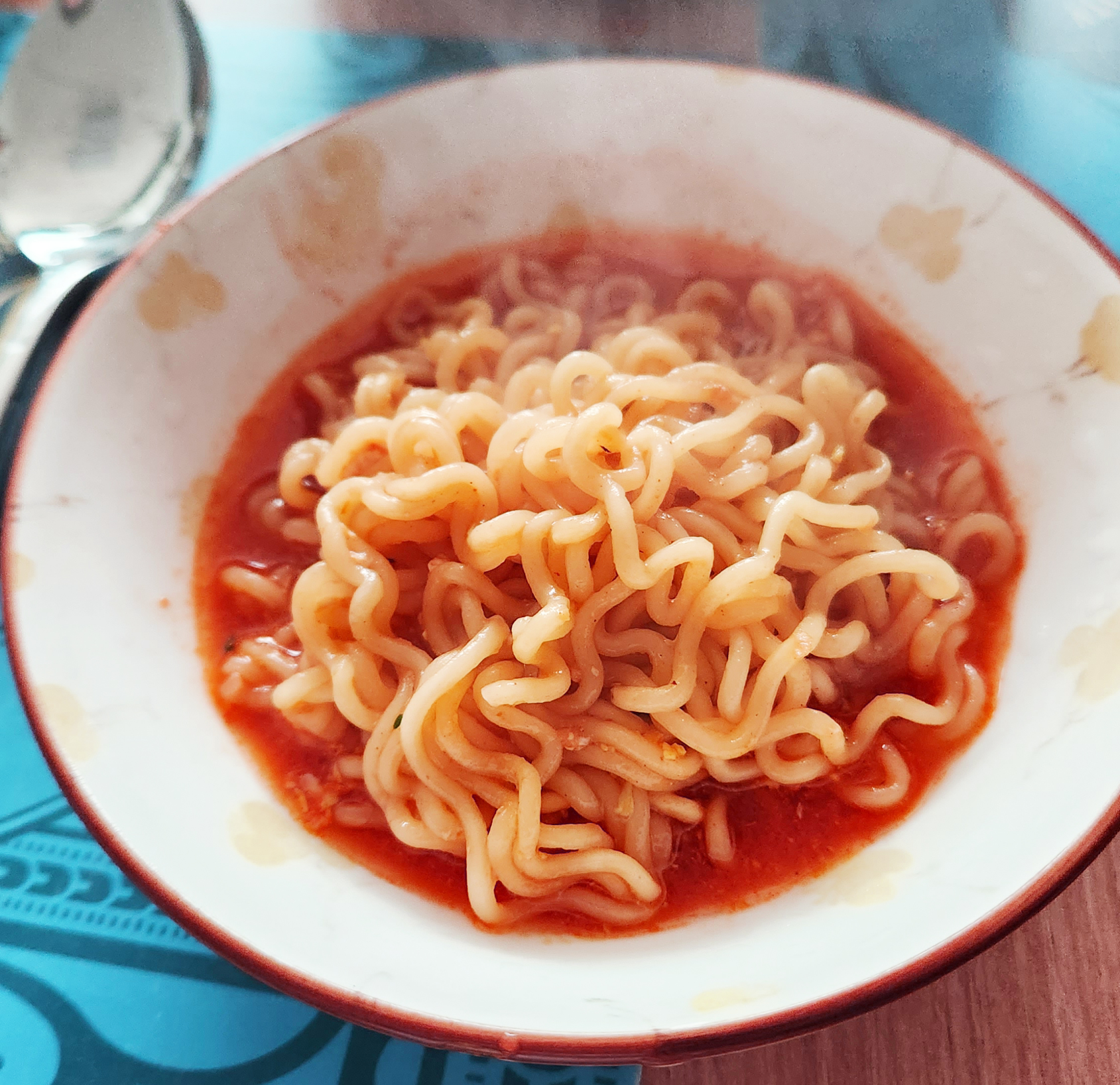 열라면 특성상 분말수프가 상당히 밝은 빨간색을 띠고 있습니다