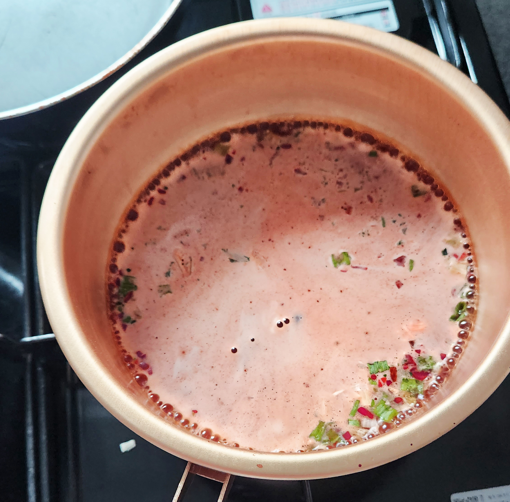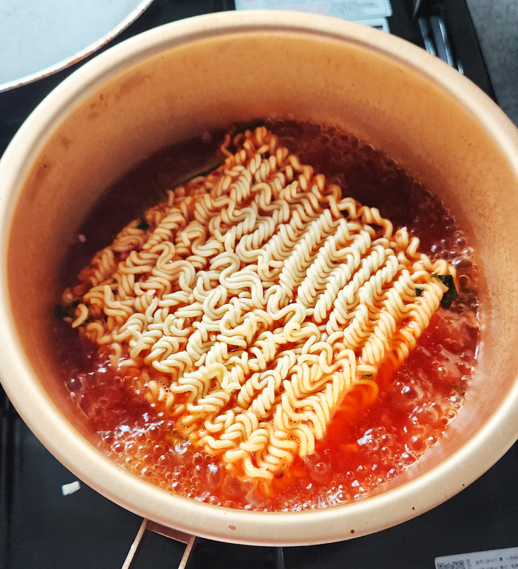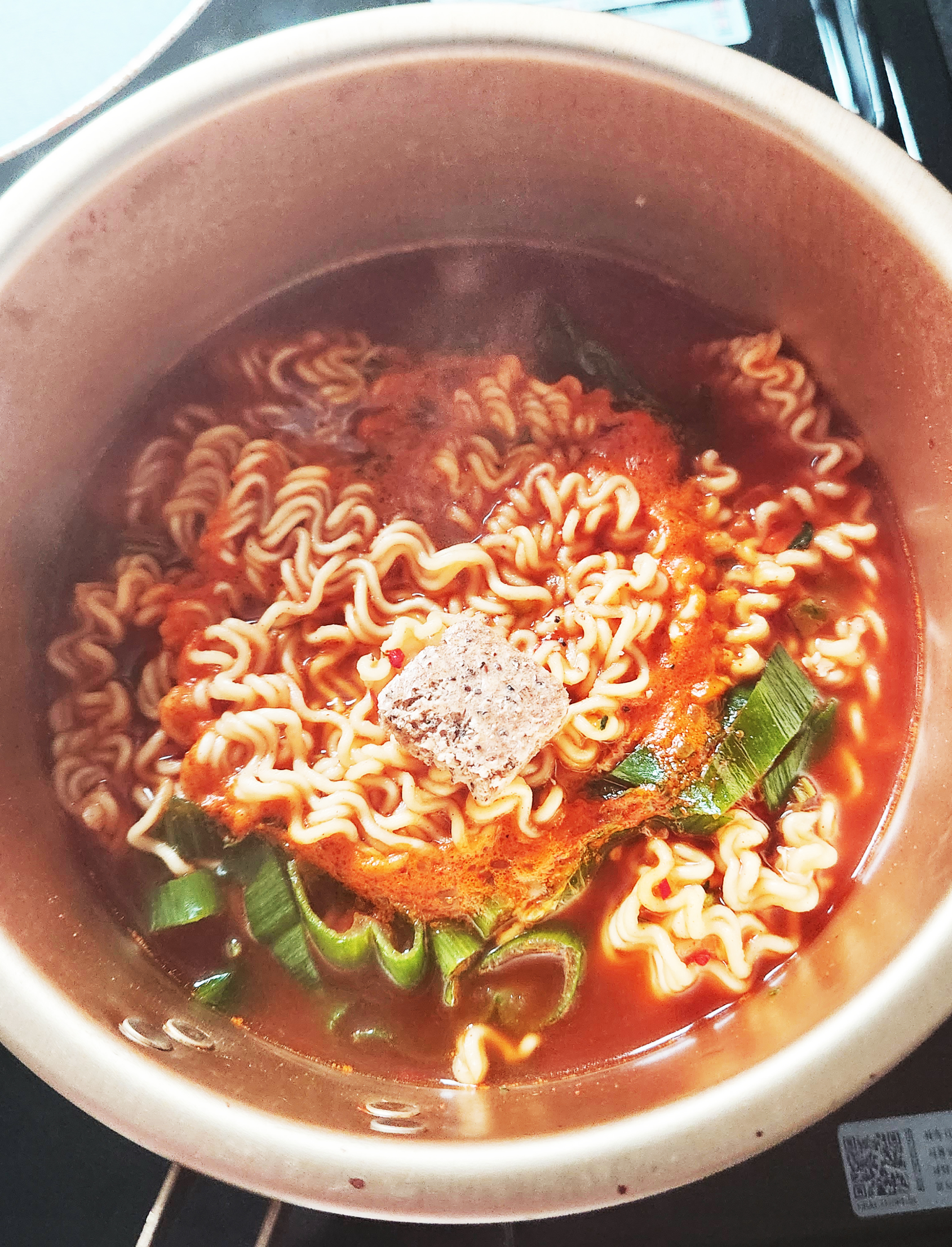 일단 라면이 다 익어서 가스불 끄고 마늘후추블록을 넣었습니다