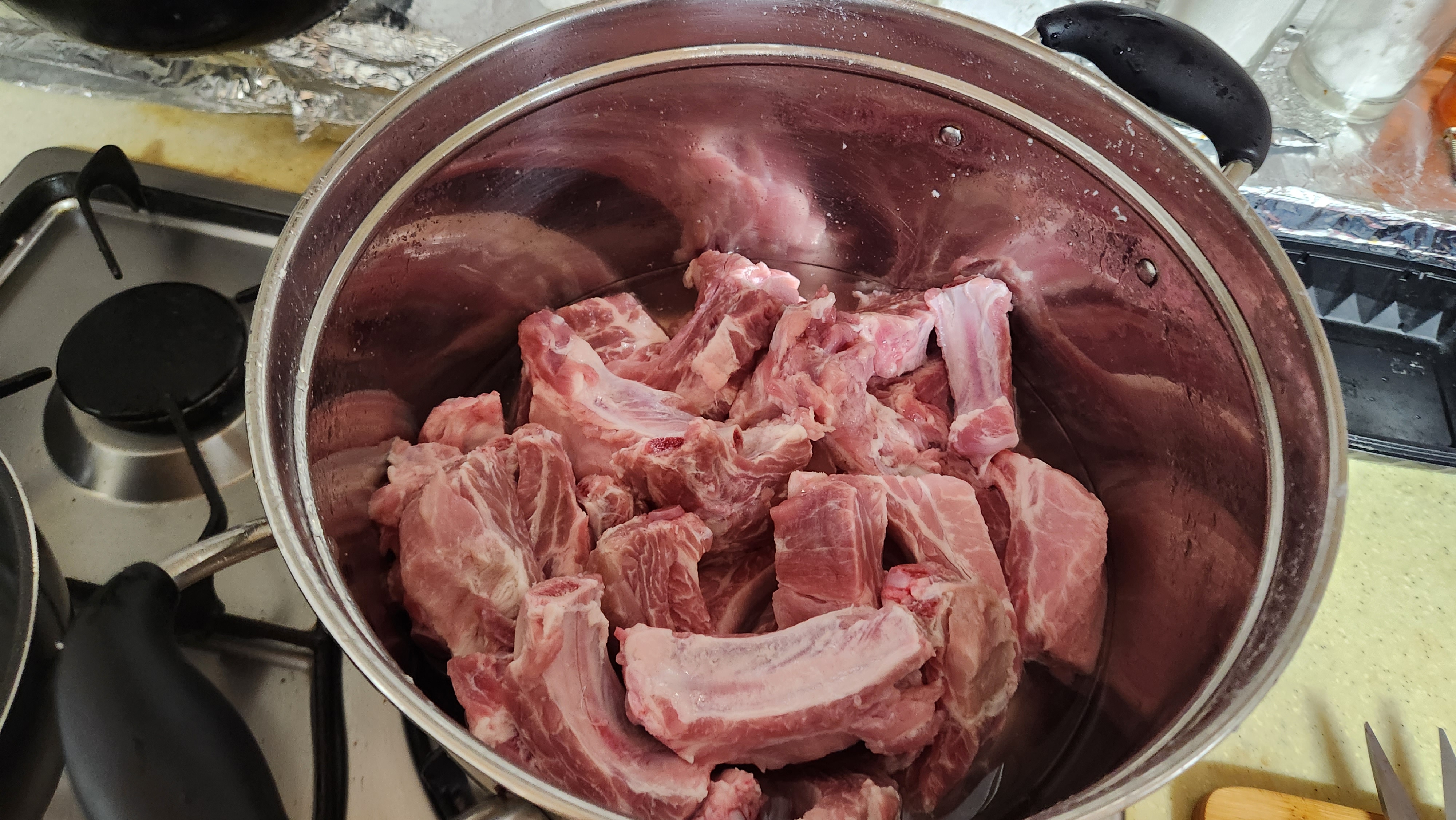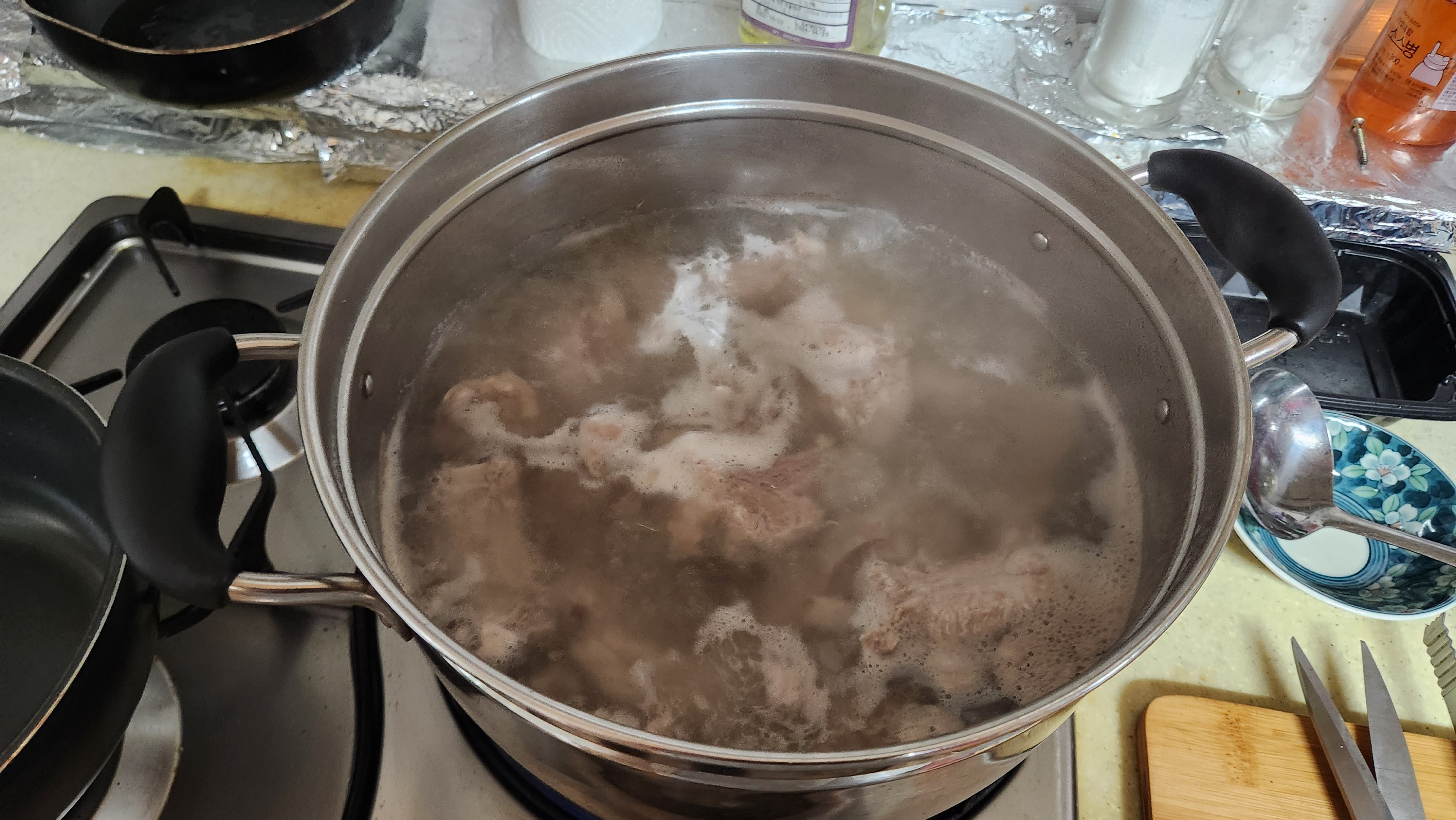 한번 끓인 돼지등갈비를 찬물에 한번 더 씻었습니다