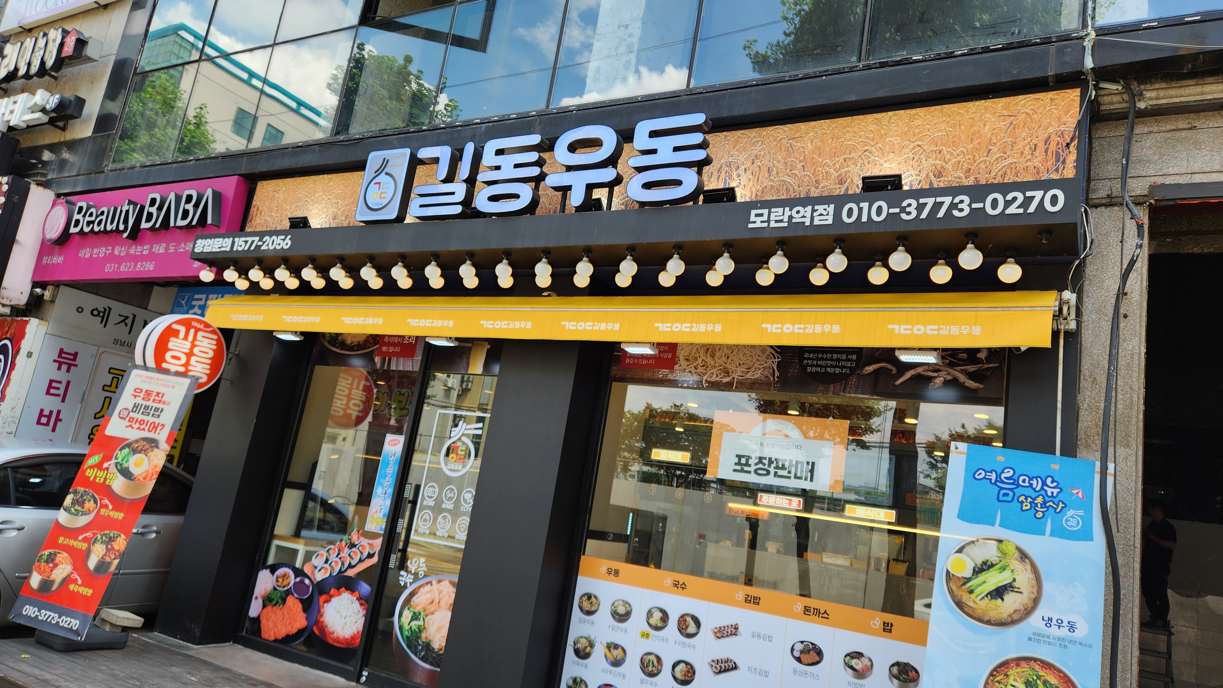 그러다가 딱 마주친 간판이 길동우동 이었습니다