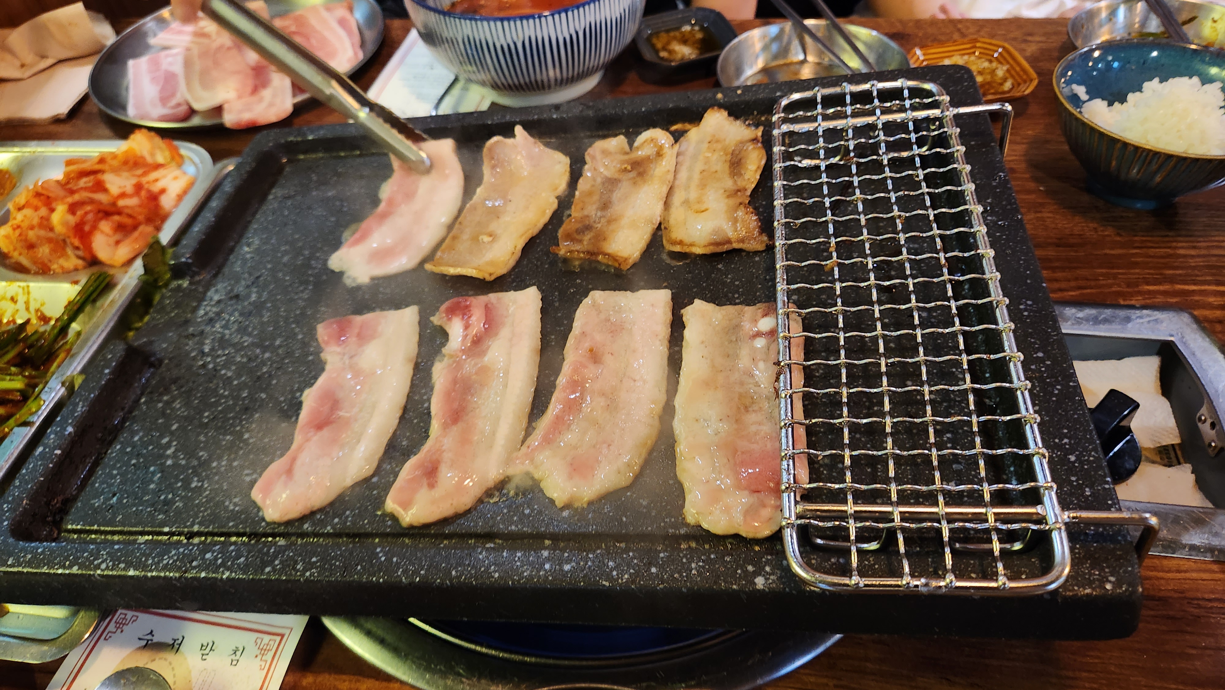 여기는 냉동삼겹이다 보니 고기가 얇아서 잘 구워지는 거 같아요^^