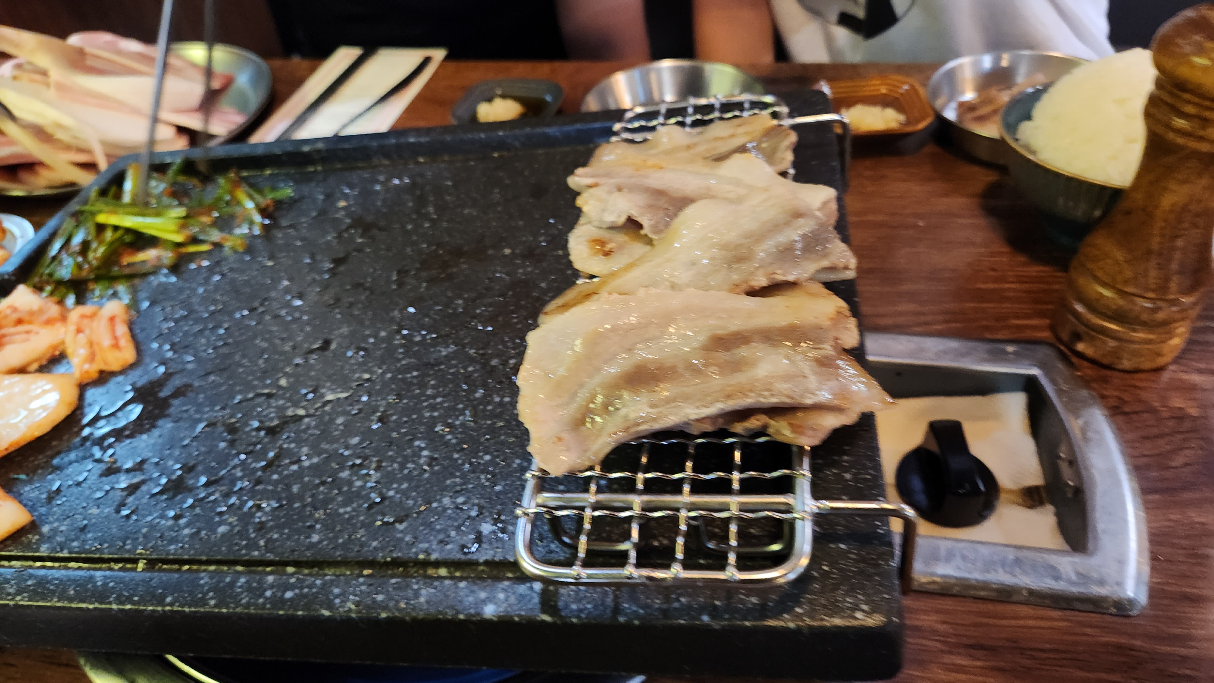 2인분 추가로 시켰던 삼겹살이 거의 다 구워져 가네요...