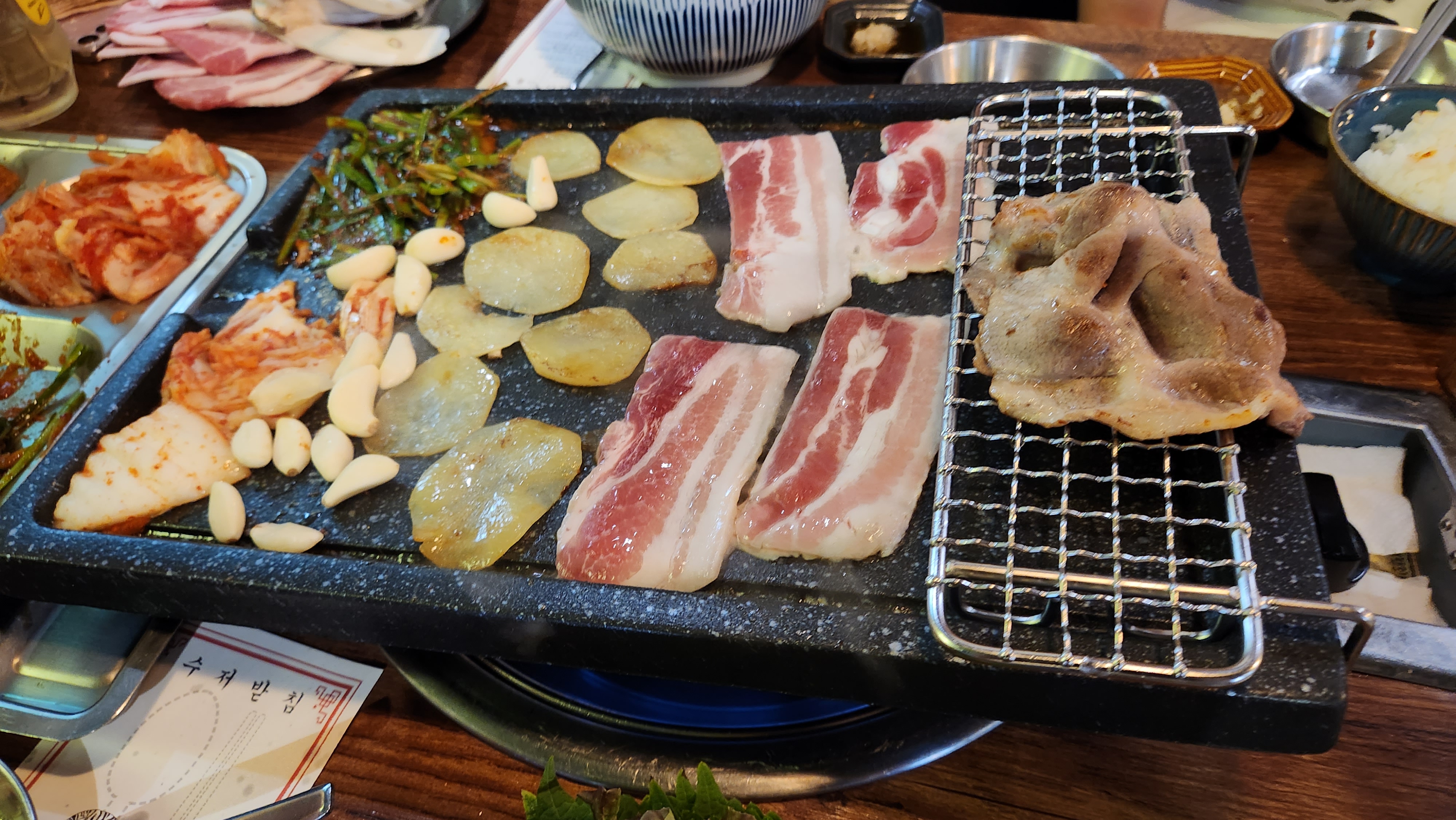 삼겹살을 좋아해서 삼겹살을 먼저 구워 먹고 목살은 나중에 구웠습니다