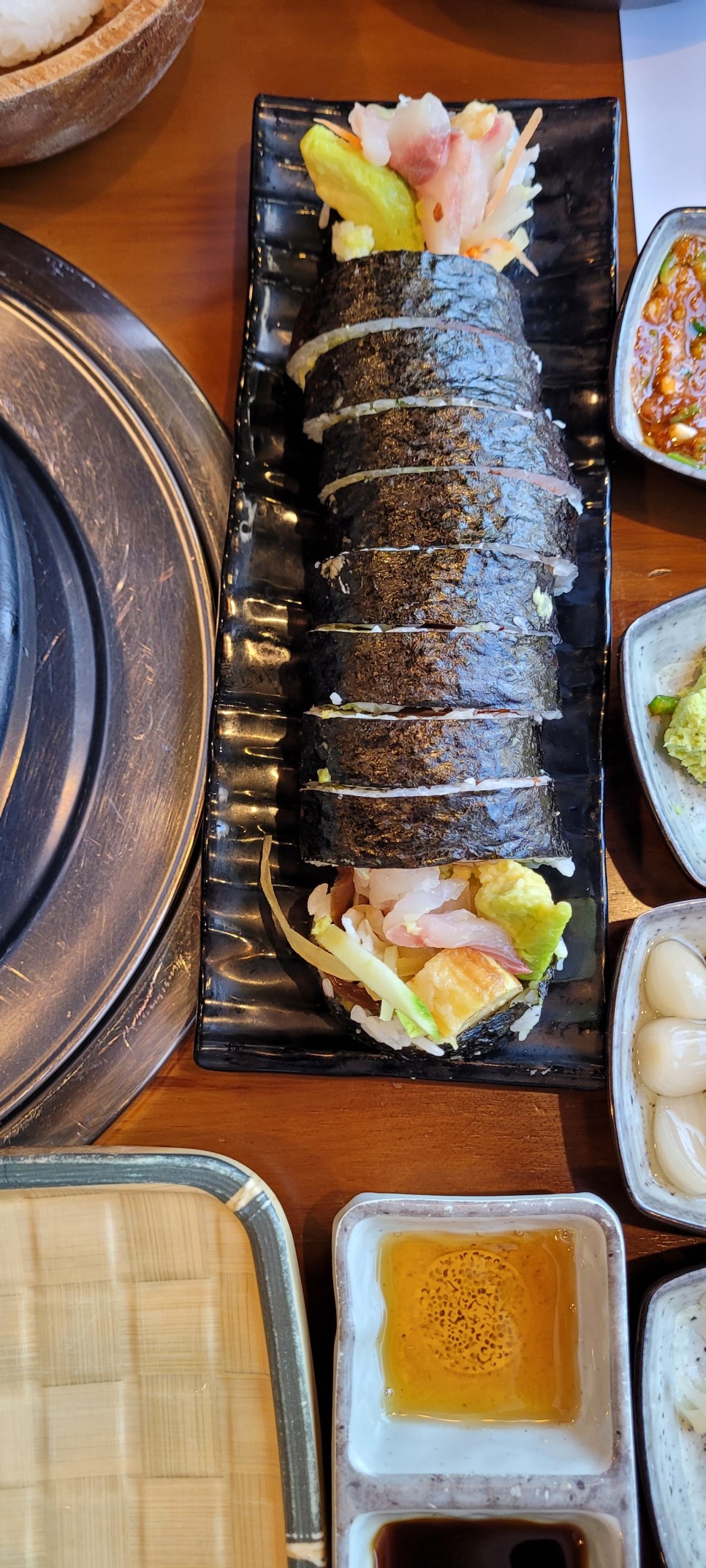 추가로 김밥 비슷하게 해서 나왔는데 김밥속이 새우와 야채, 계란등등