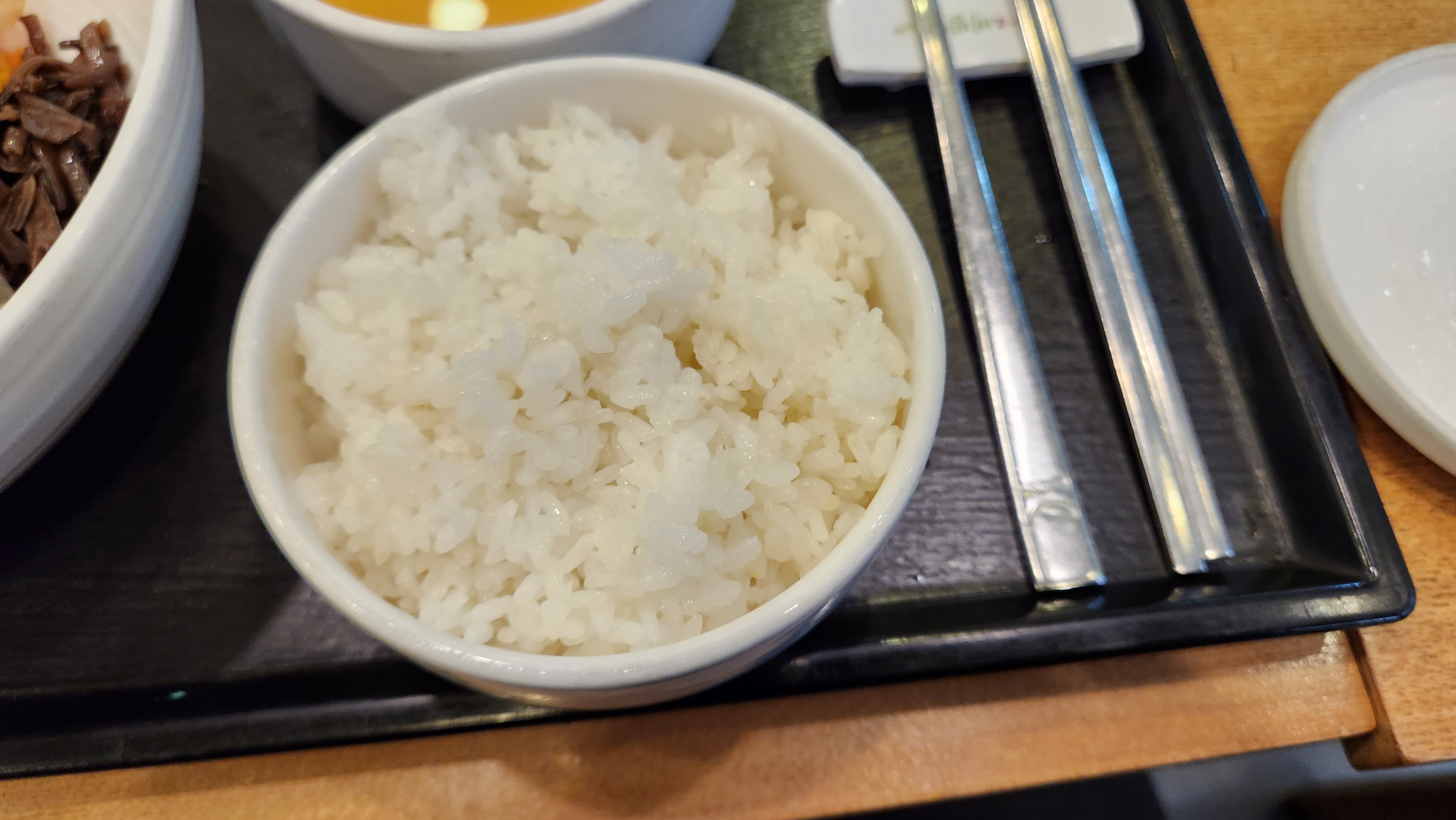 반찬은 김치와 나물(?)등이 조금씩 나오고 국은 콩나물국이 나와요