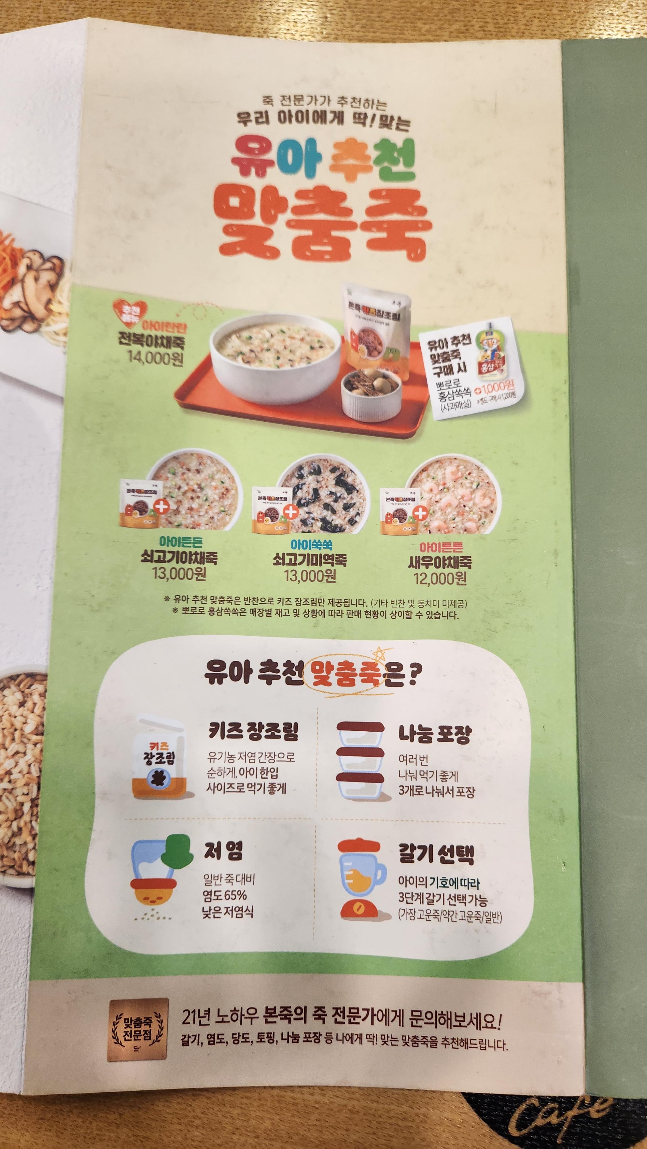 죽을 개인별로 맞춤식으로 제공도 하고 있어서