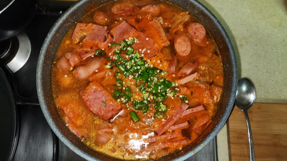 기본적으로 스팸, 후랑크소세지, 네모난햄, 김치등을 넣고