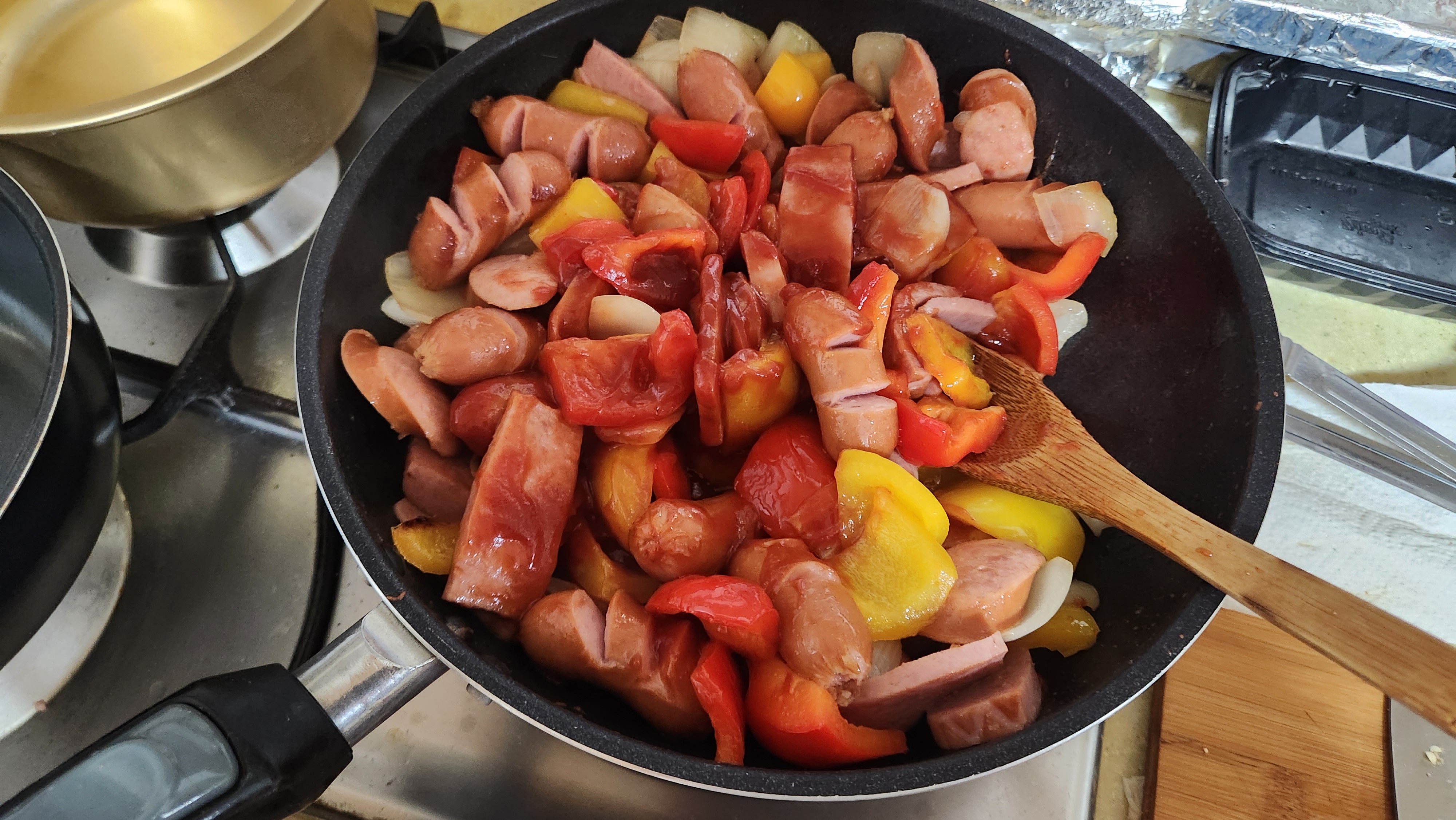 저녁에 뭐를 먹을까 하다가 소시지를 사다 놓은 것들이 있어서