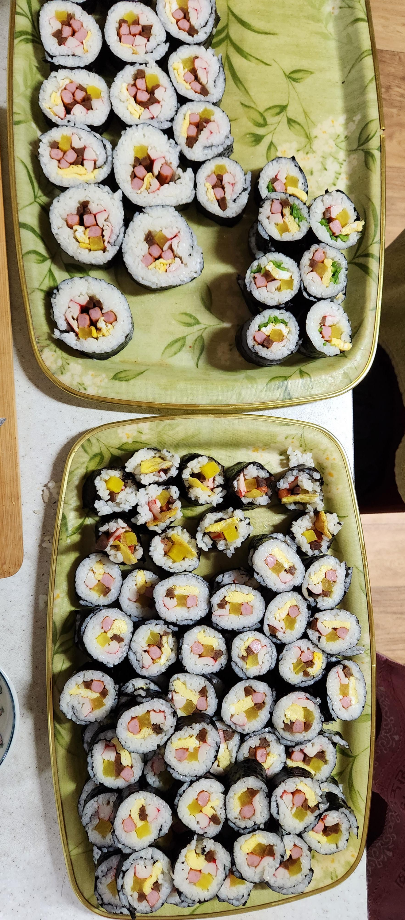 전에는 20줄 정도 만들었는데...요즘은 김밥 김 봉지에 들어 있는