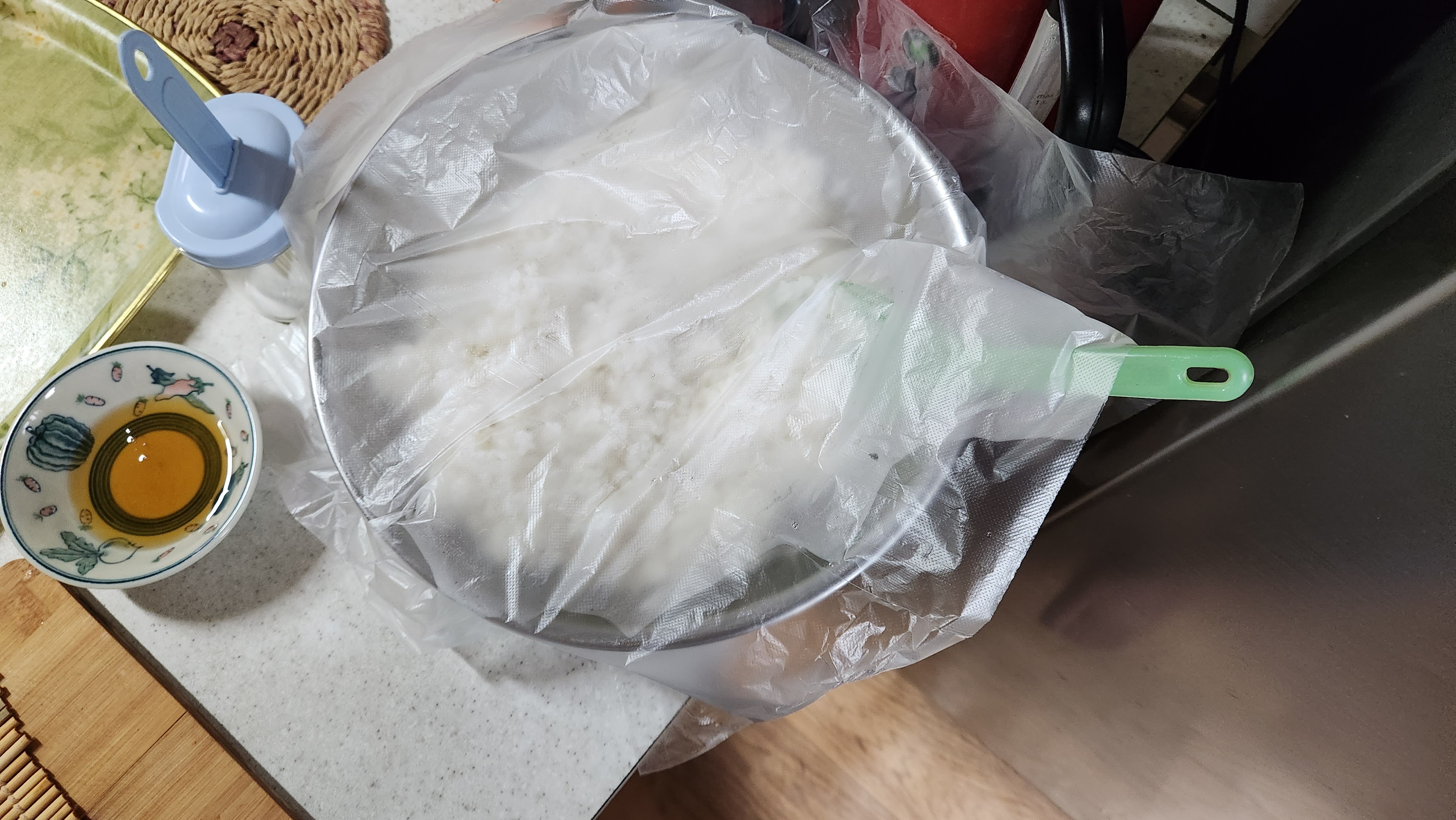 (전에 김밥집에서 김밥 싸실때 유심히 보니 밥이 담긴 통에 랩(?)같은걸 씌워 놓으시더라구요^^)