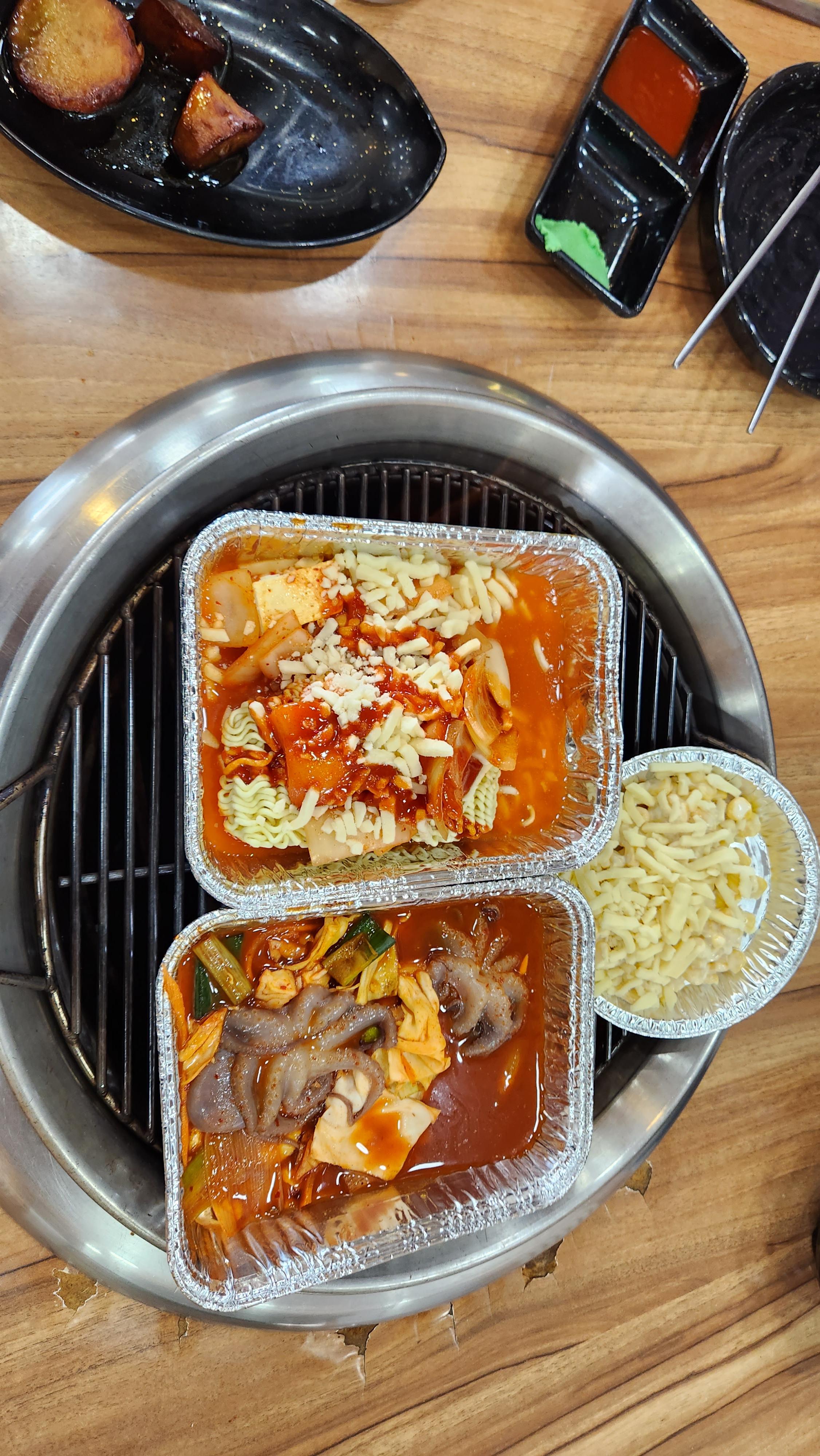 주꾸미와 라볶이(?) 그리고 콘치즈를 먼저 불위에 올려 주셔서