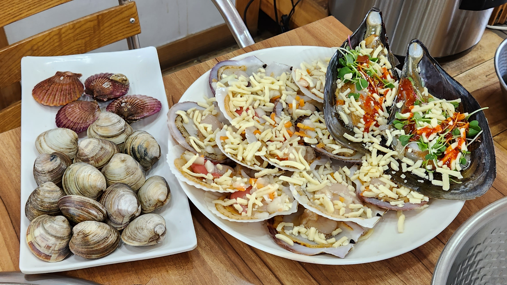 저희는 와이프와 저 두명이라 치즈조개구이 + 모듬조개 소(小)를 시켰습니다