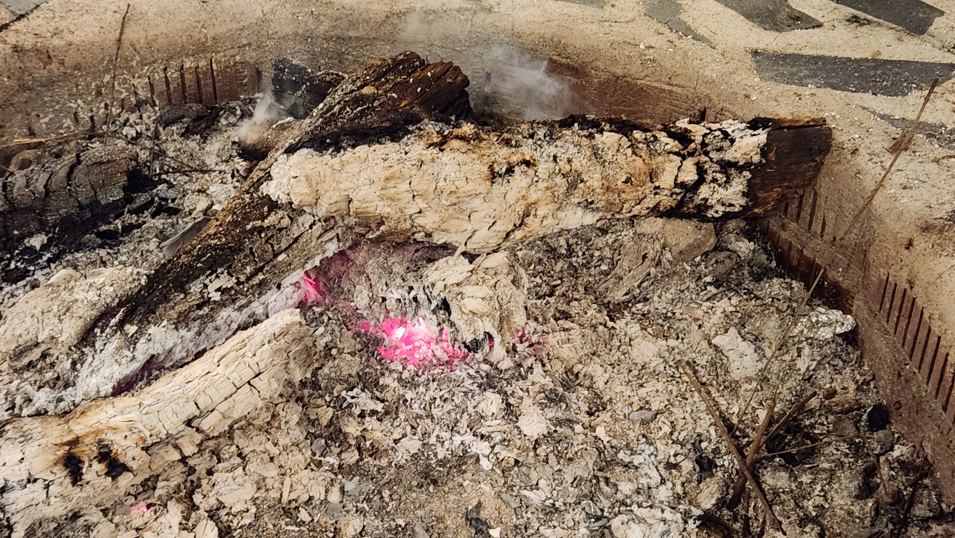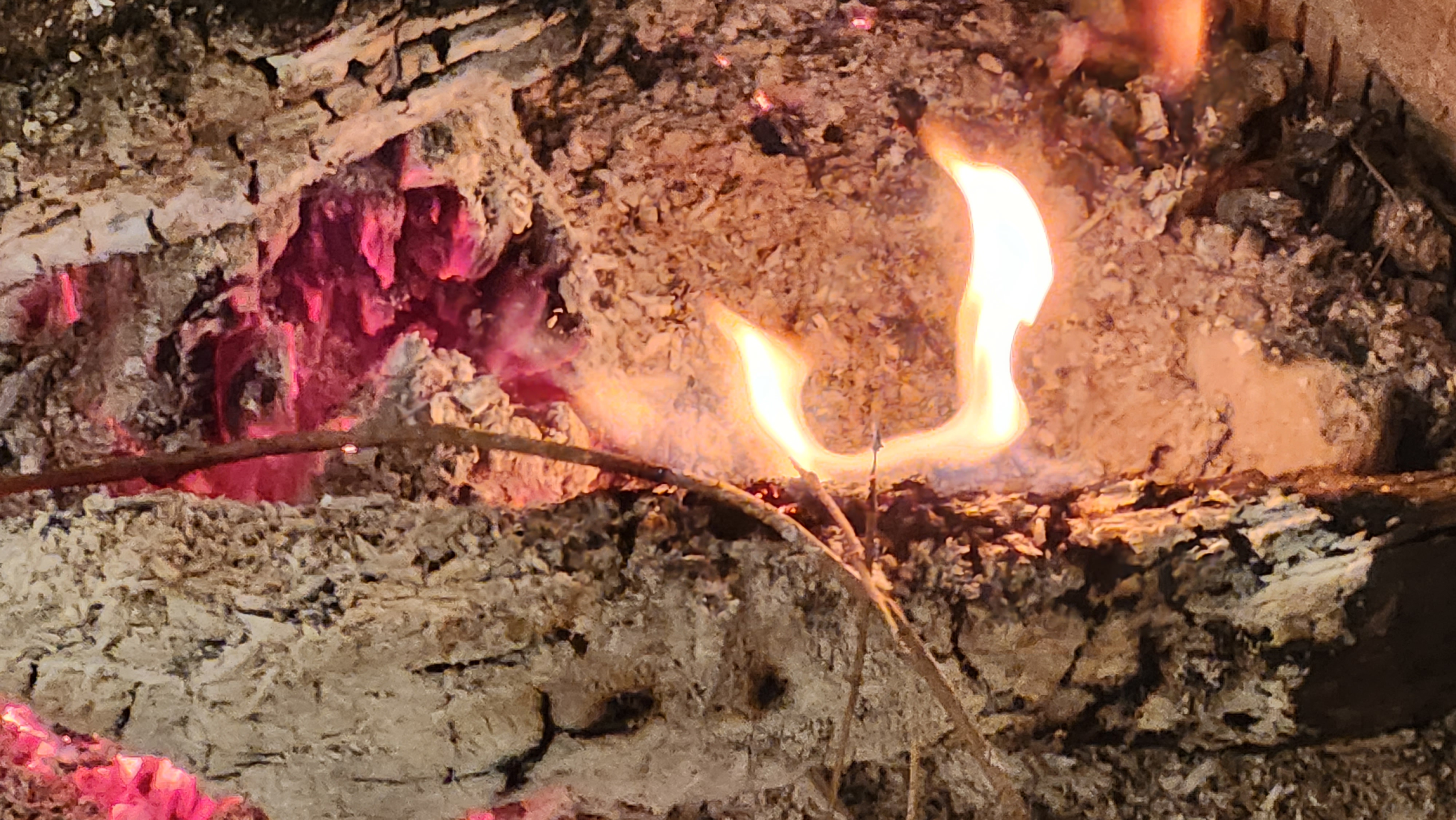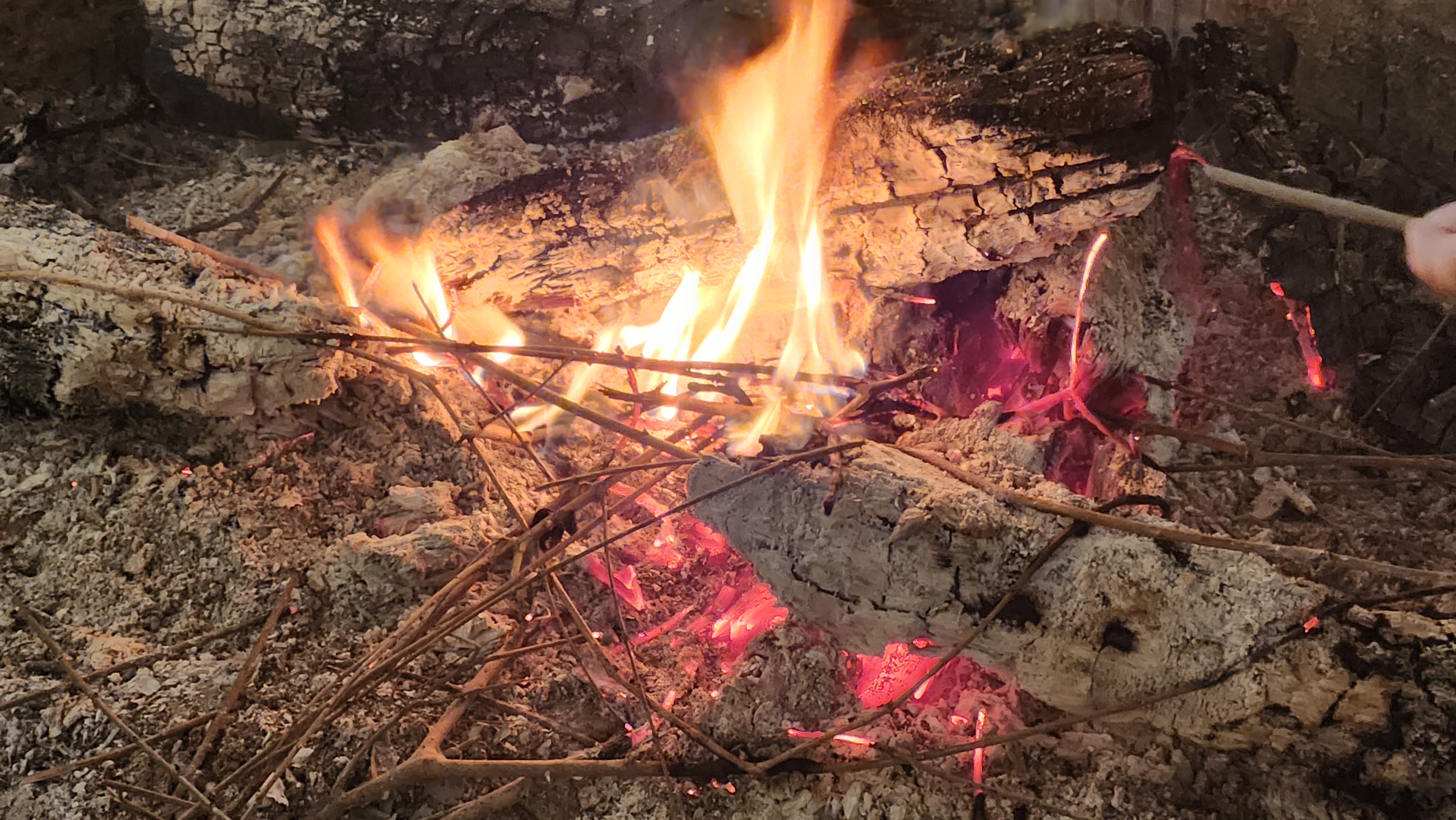 불씨가 약간 살아 있어서 주변에 나뭇가지(떨어져 있는)를 주워다가