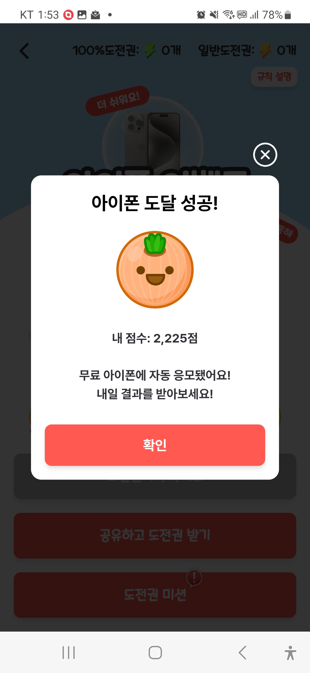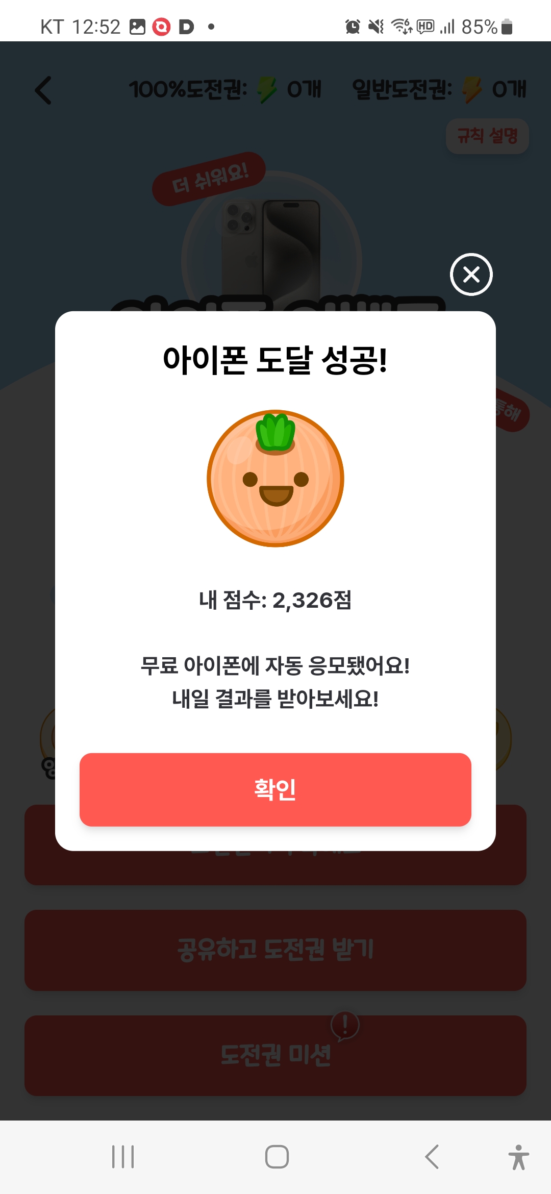 또다시 도전에 성공하여 아이폰 응모에 성공했습니다...