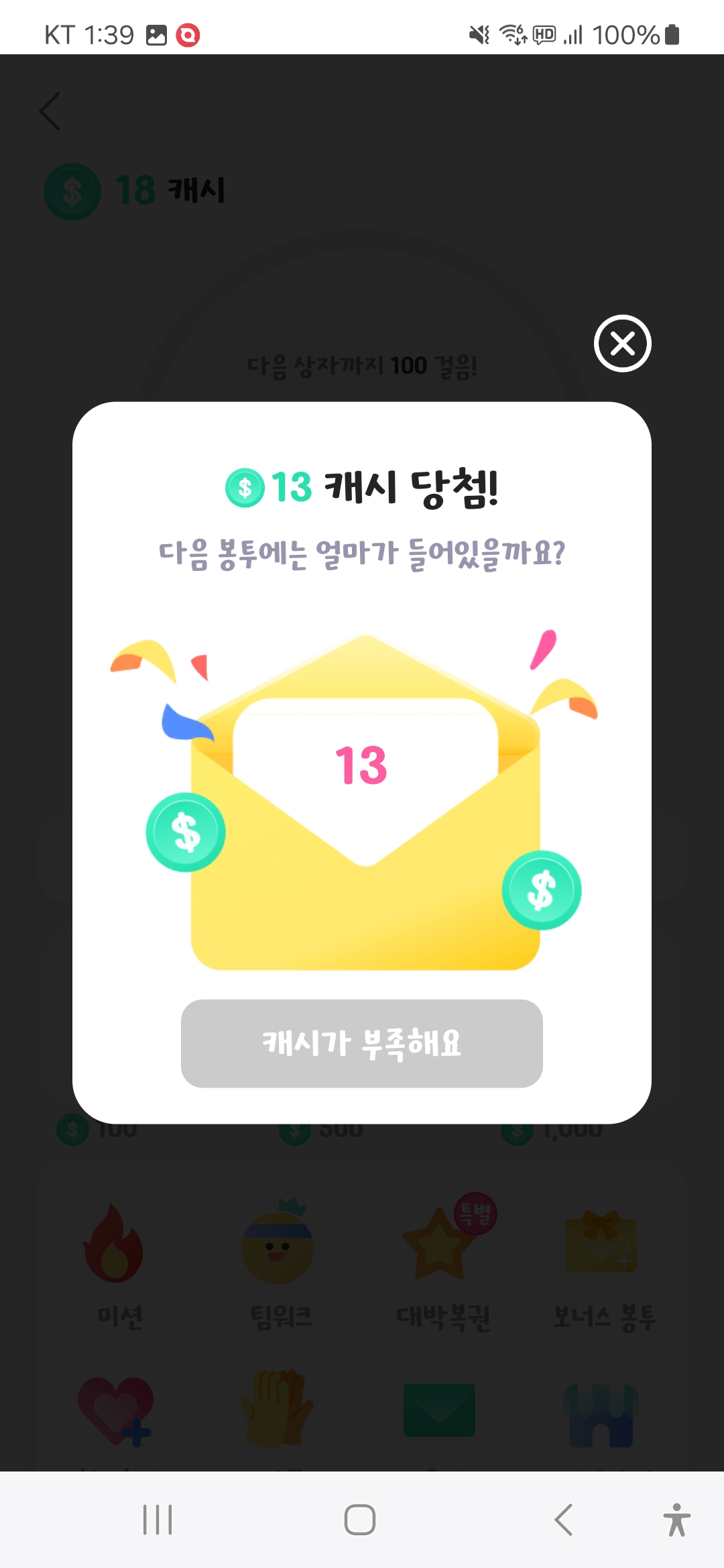 문제는 보너스 봉투가 최대 10,000 캐시가 최대라는 점입니다