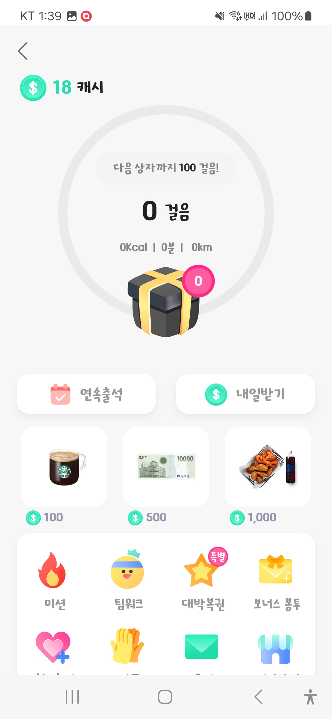 올워크를 통해 캐시가 자동으로 쌓이고 캐시를 활용하여 커피나 상품권등을