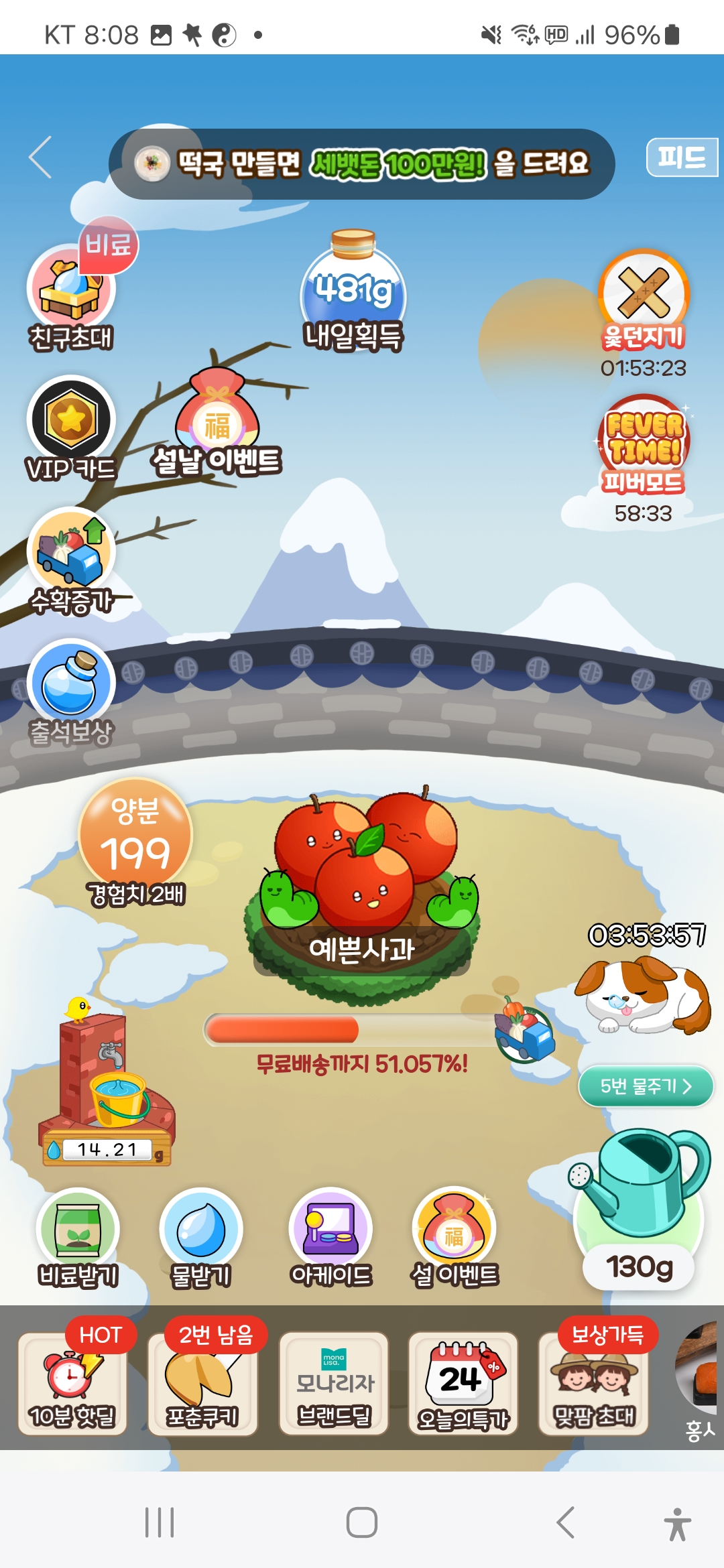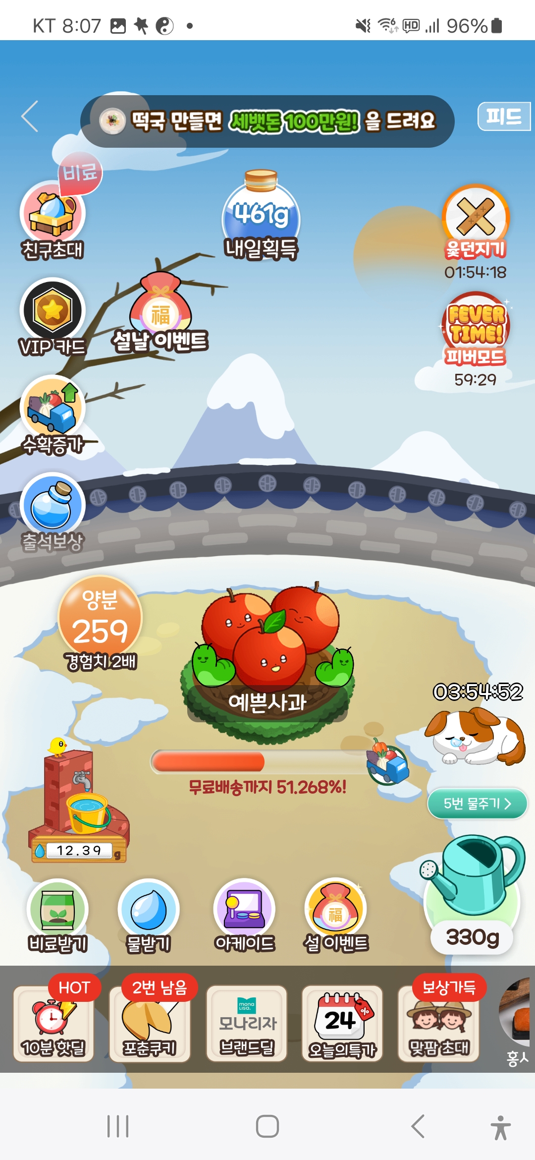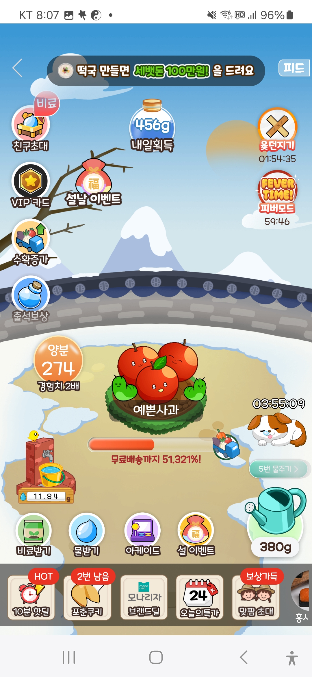 400g 물을 모을려면 기본출석에 친구농장가서 물을 탭해서 모아야 되고