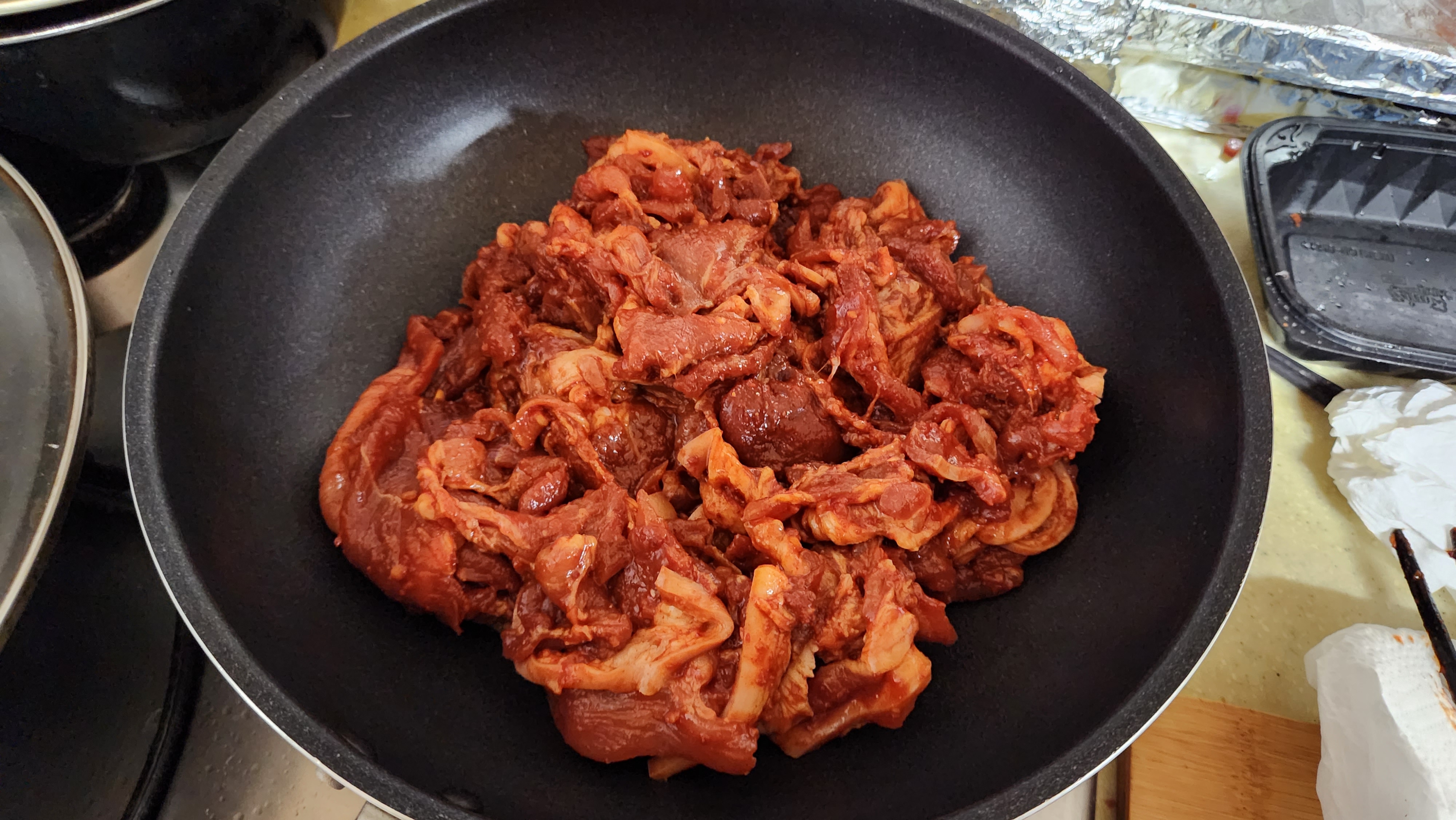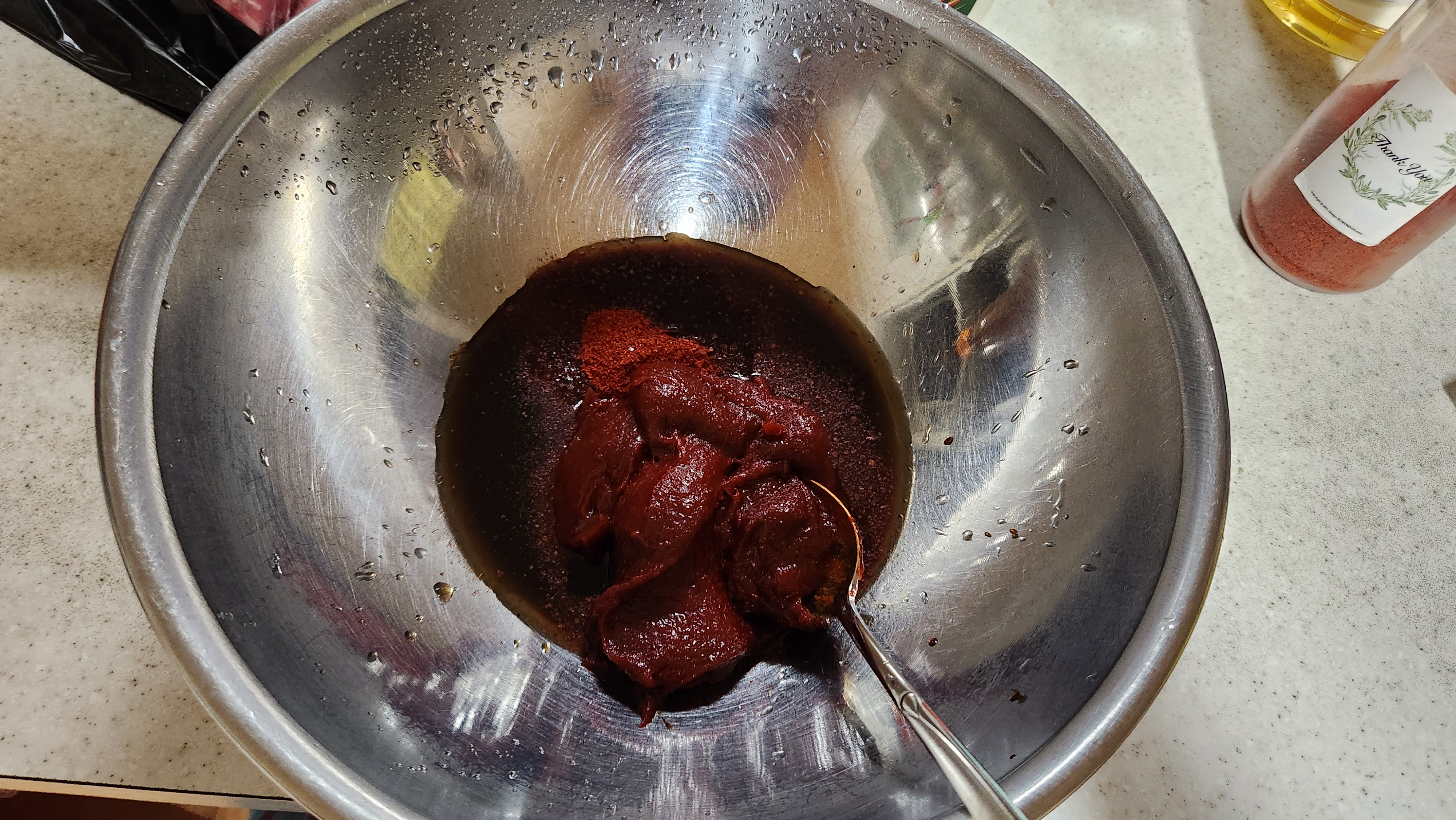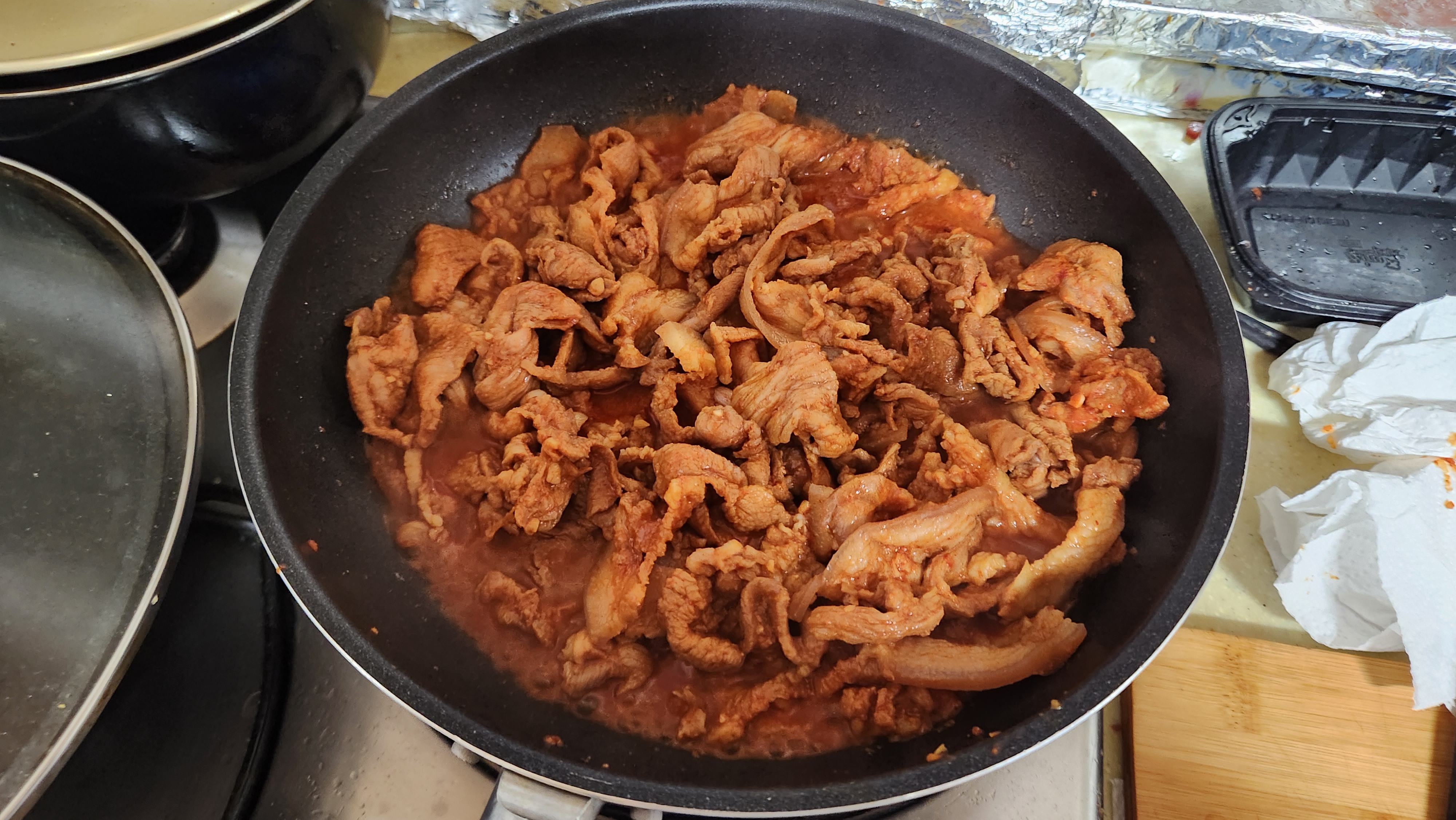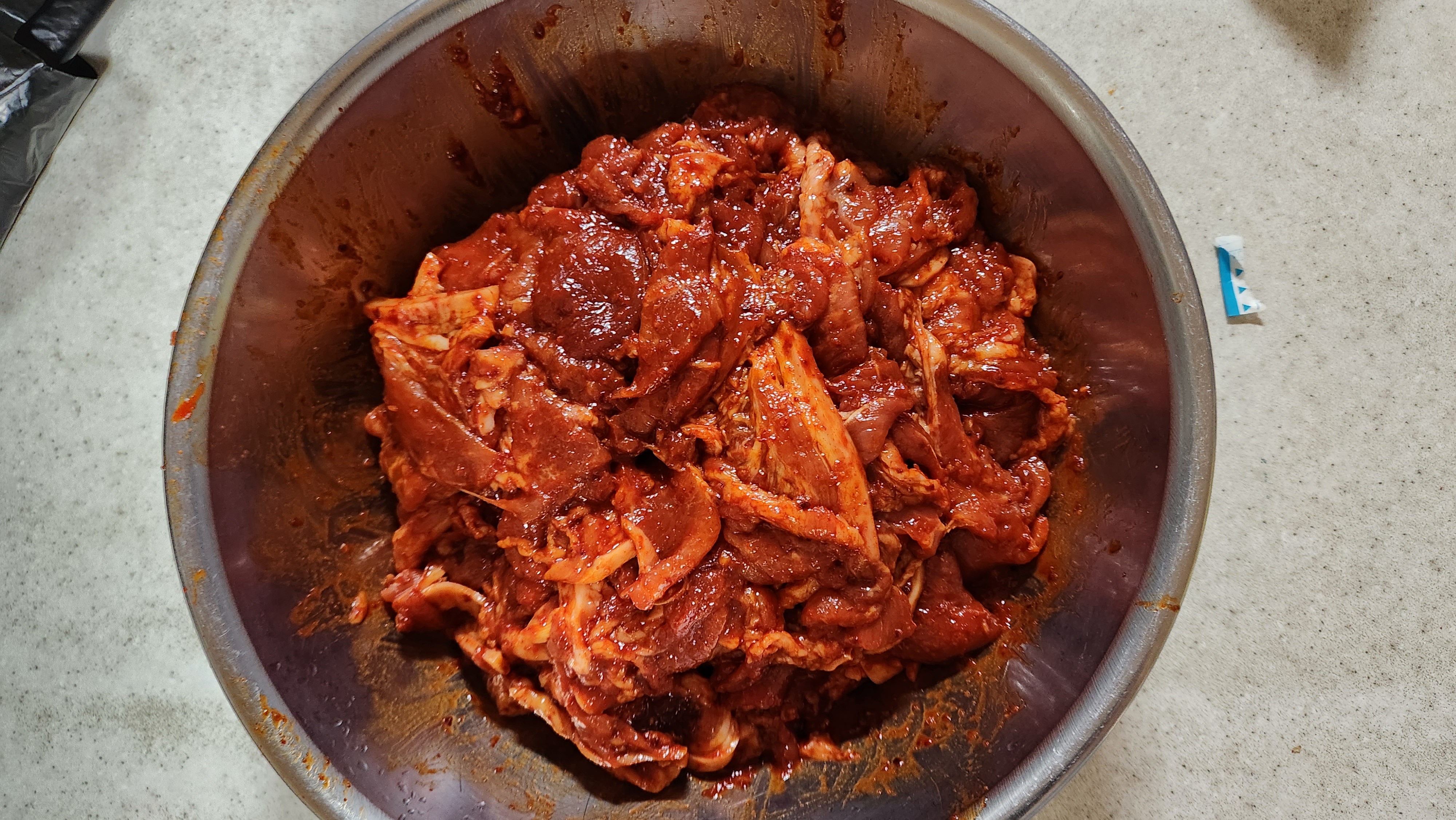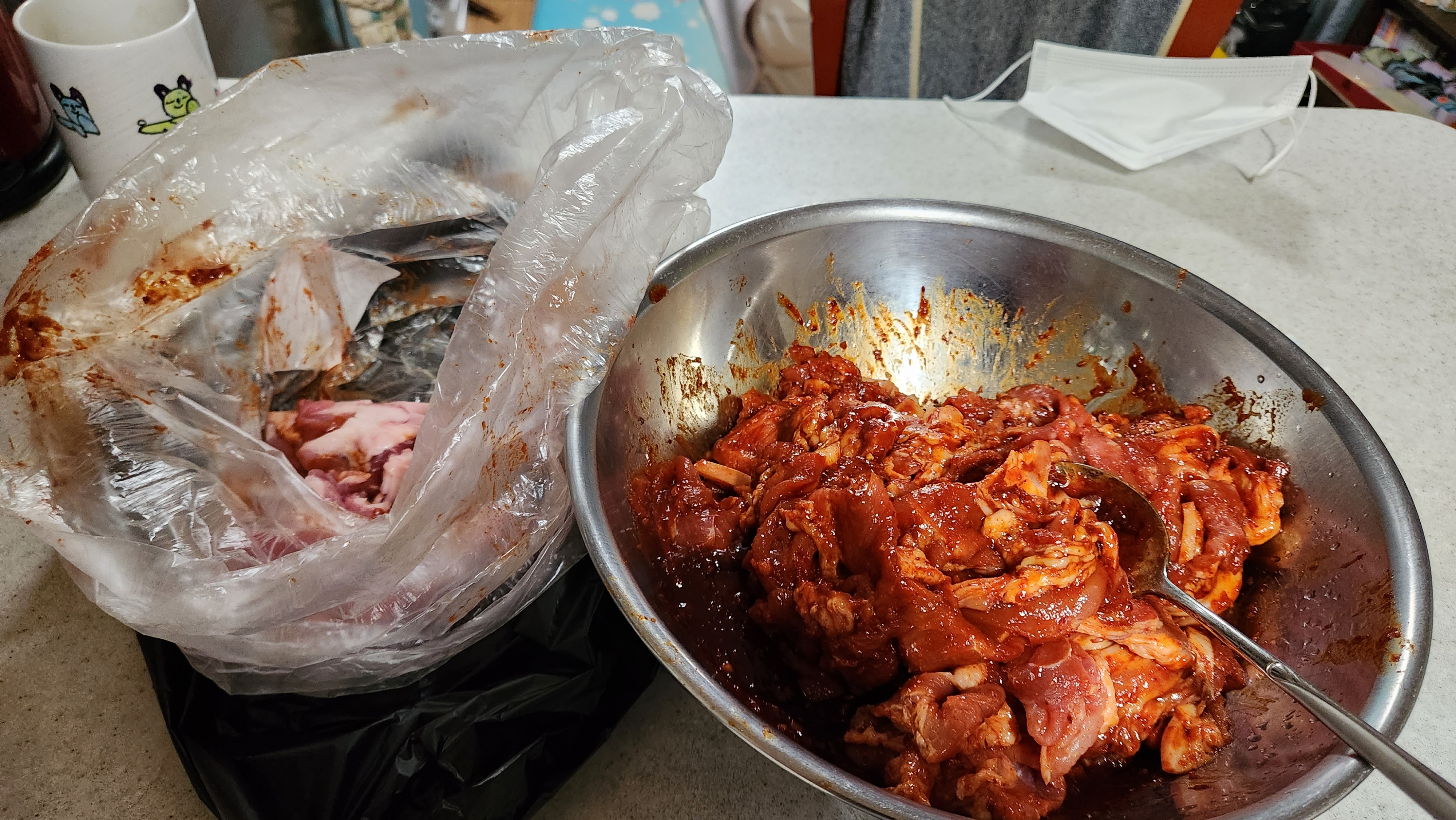 고추장은 3큰술(고봉밥올리듯)을 했는데 돼지고기를 2근 반을 해야 해서
