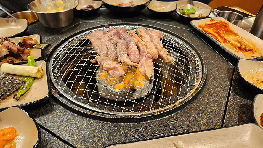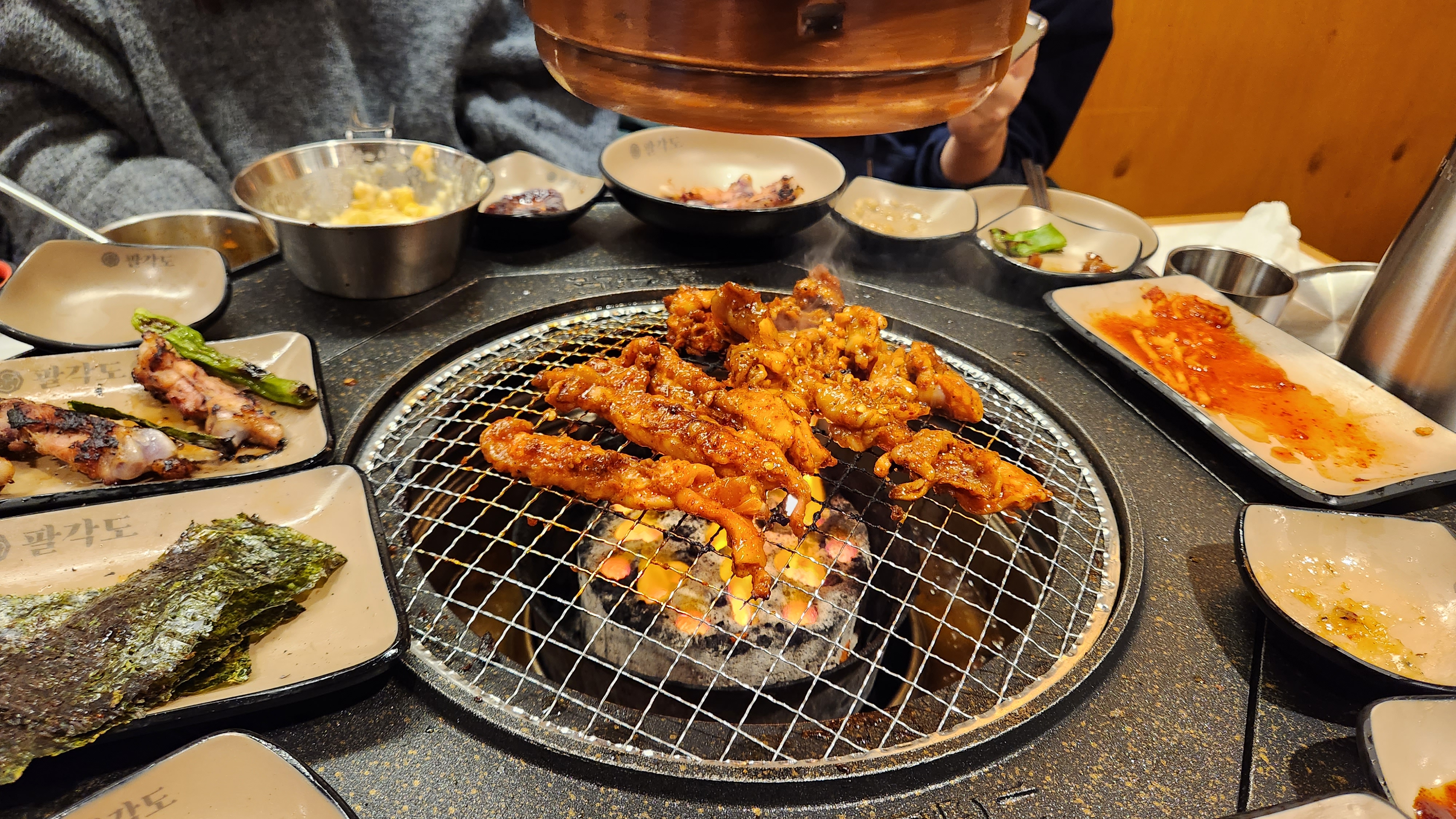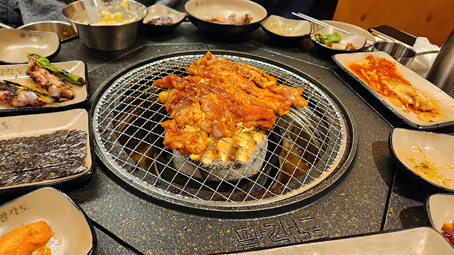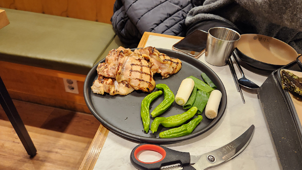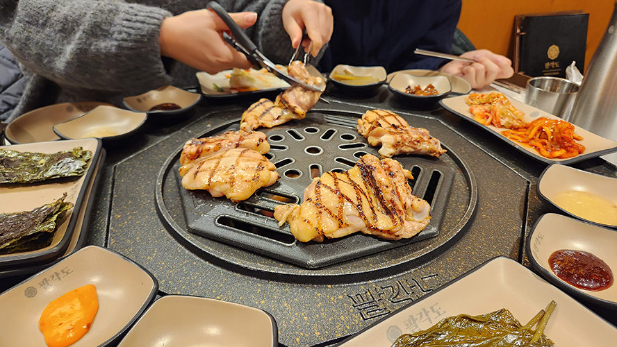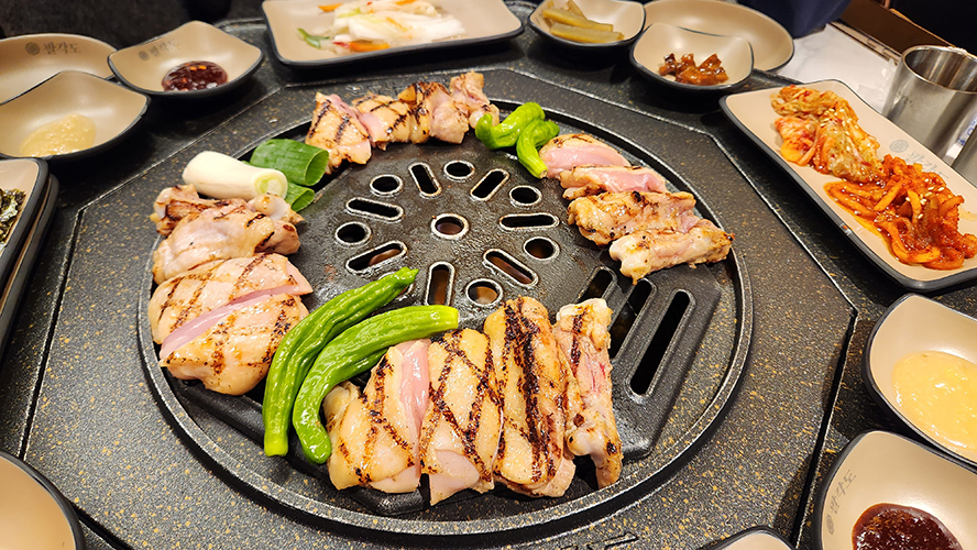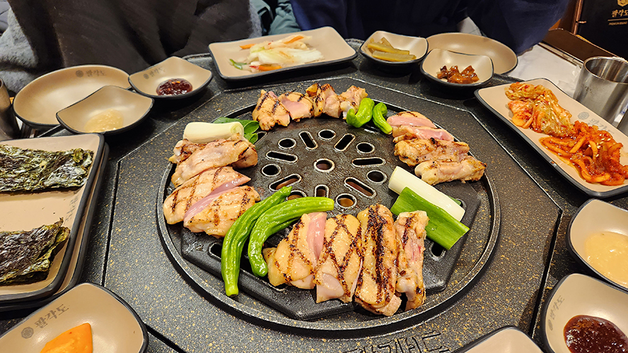 3명이서 먹은 게 숯불닭갈비 4인분에 닭안창살과 닭목살 각각 1인분, 철판볶음밥, 공깃밥 그리고
